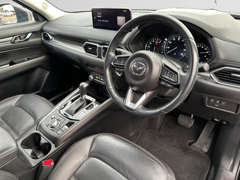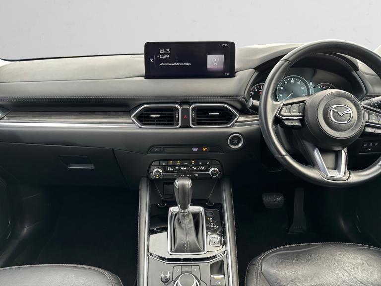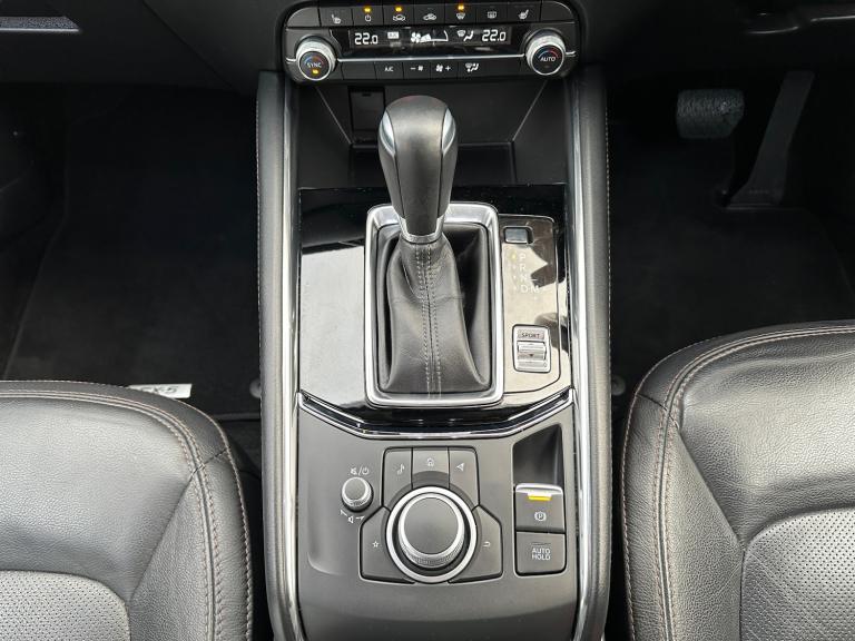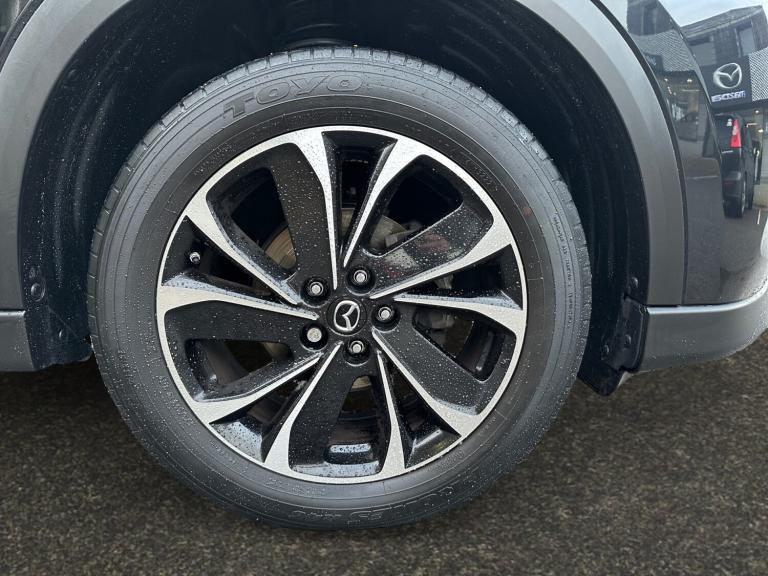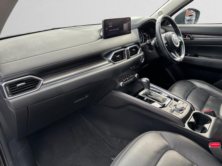 ..10.25'' display with Mazda Connect infotainment, 7'' colour TFT display, Advanced blind spot monitoring, Apple car play/Android Auto, Bluetooth connectivity with voice control, Collision prevention assist, Connected services, Cruising Traffic Support, Drive mode selector, Electric power steering, Emergency stop signalling system, Engine start/stop button, Forward collision warning, Front and rear parking sensors, Integrated navigation system, Intelligent speed assist, Lane departure warning system, Lane keep assist, Radar cruise control with Stop and Go, Reversing camera, Service indicator, Traffic sign recognition (TSR), Trip computer, Windscreen projected colour active driving display (HUD) with memory, i-stop, 2 USB sockets in rear, 2x USB sockets in front, 6 speakers, AM/FM radio, Bluetooth audio streaming, DAB Digital radio, Multimedia Commander including separate volume dial, Steering wheel mounted audio controls, Adaptive front lighting system, Auto dimming rear view mirror, Automatic headlights, Black inlay dashboard panel, Body colour door mirrors, Body colour roof spoiler, Body coloured front and rear black lower bumper mouldings, Bright finish signature wing, Coming/leaving home lighting function, Door mirror integrated indicators, Dual chrome tailpipes, Dusk sensitive headlamps, Electric front/rear windows with one touch auto up/down, Front grille in gloss black finish, Gloss black B and C pillars garnish, High beam assist, Intermittent rear wash/wipe, LED auto levelling, LED daytime running lights, LED front fog lights, LED Headlights, LED third brake light, Power folding and heated door mirrors, Power tilt/slide sunroof, Privacy glass (rear side windows only), Rain sensing front wipers, Rear side wing doors, Satin black side mouldings, Scuff plates, Shark fin antenna, Signature LED rear combination lights, Vinyl with wood grain metal inlay door trim panel, Windscreen wiper de-icer, 12v electrical power outlet, 3 seat bench in 2nd row, 3 stage heated front seats, 40:20:40 Karakuri fold-flat seat system, 6 way electric adjustable passenger seat, 8 way electric driver seat with lumbar support + memory, Cargo room flat floor board with waterproof undertray, Driver seat power slide, recline and height adjustment, Driver, Front passenger and two rear grab handles with coat hooks, Driver/passenger front seatback pockets, Driver/passenger sunvisors + illuminated vanity mirrors (drivers with ticket holder), Dual zone climate control, Folding centre