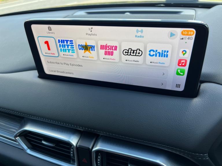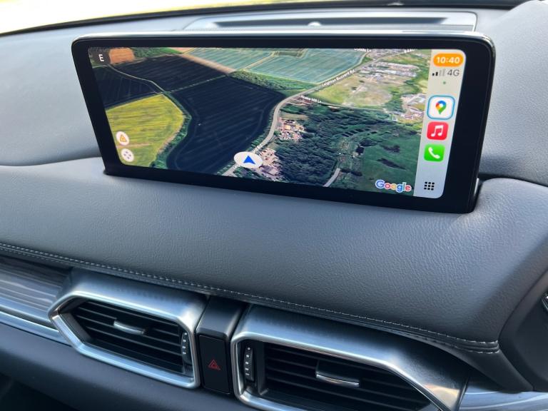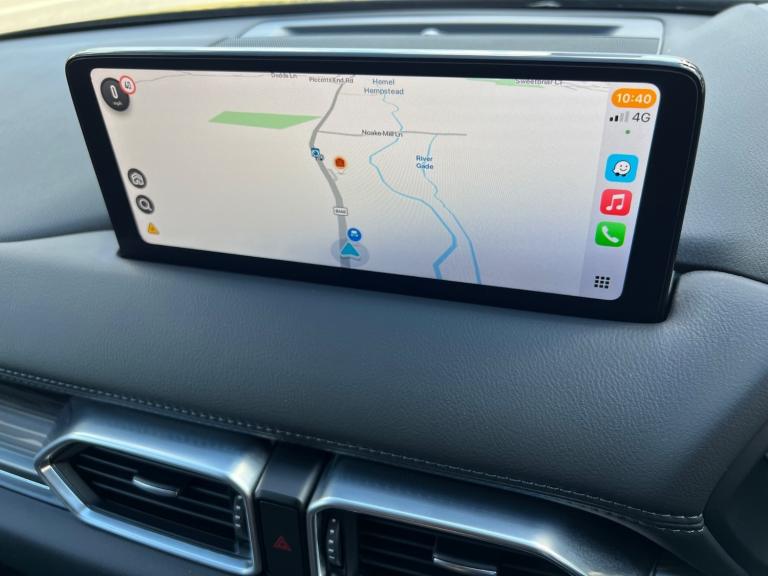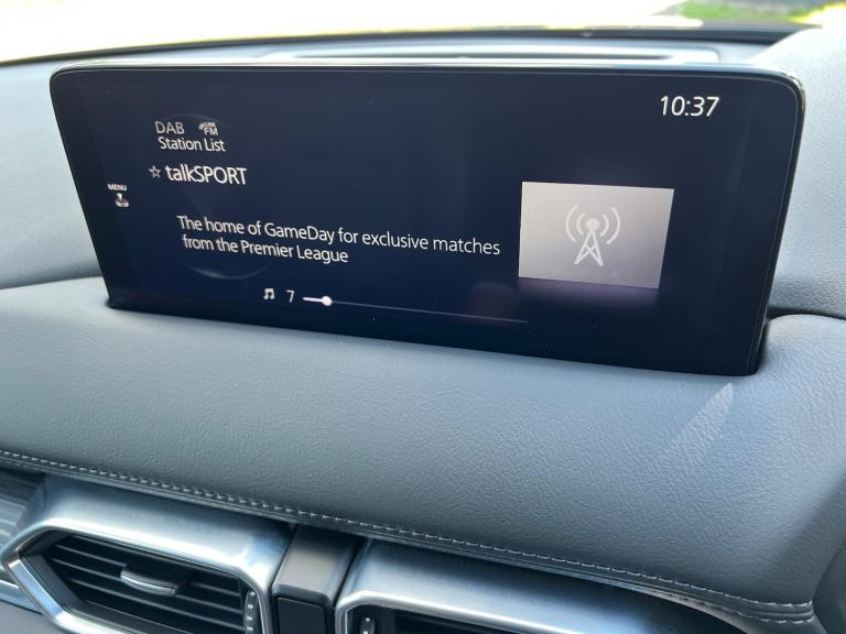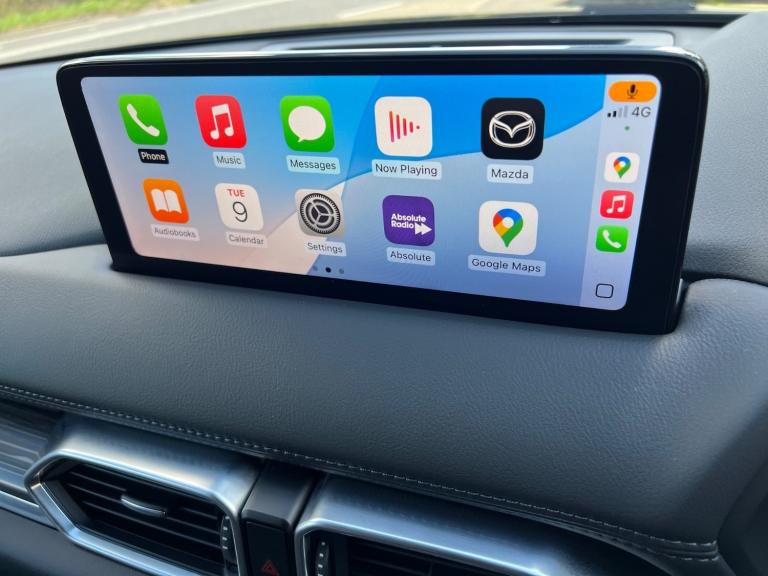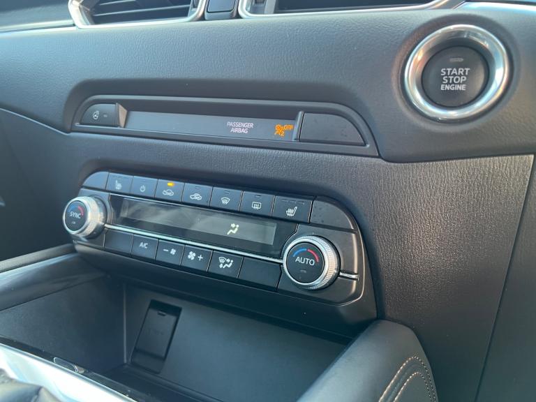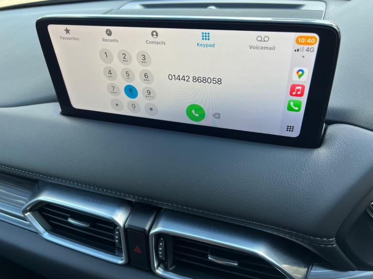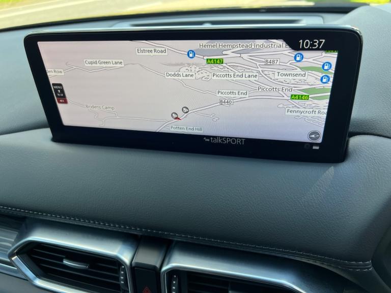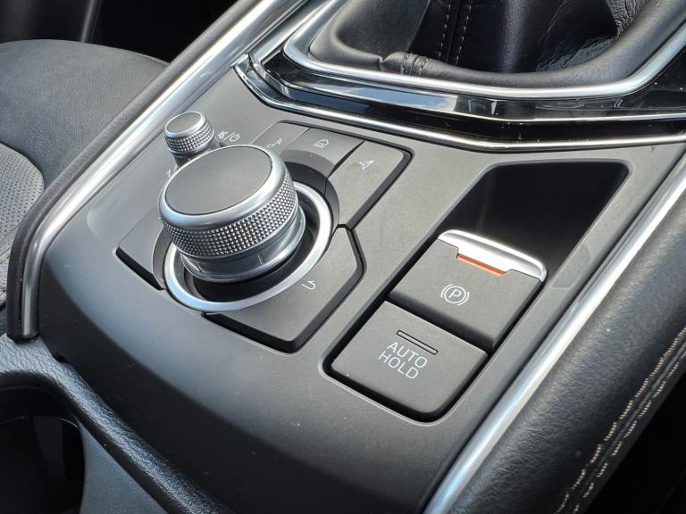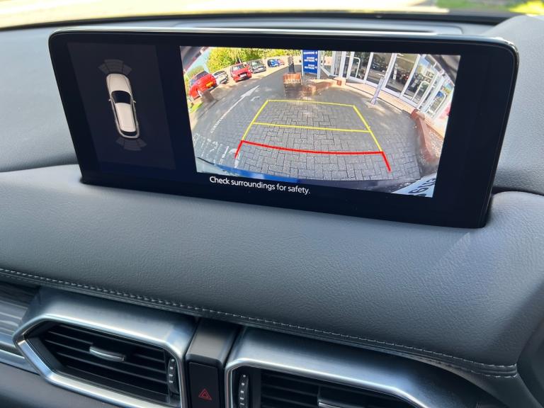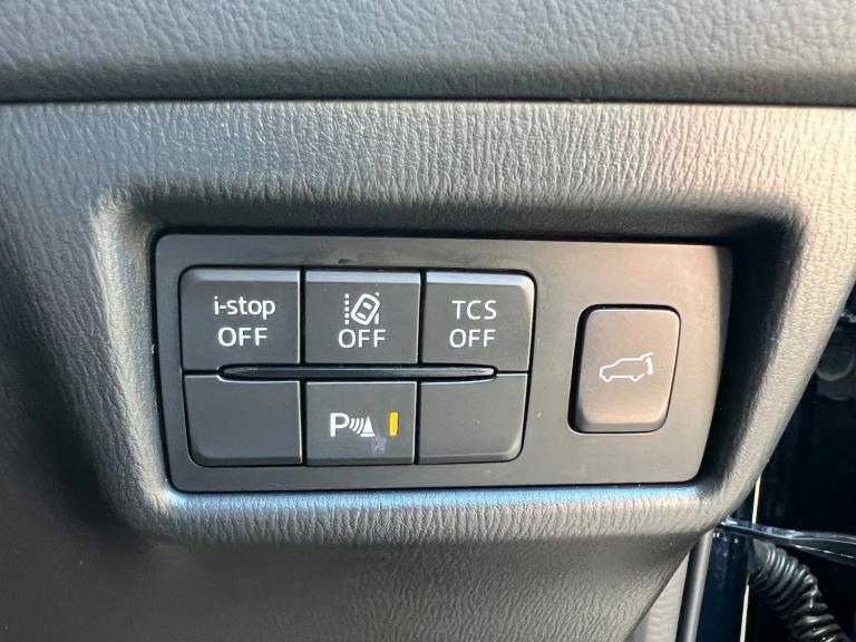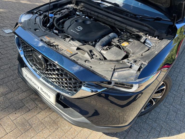 ..10.25'' display with Mazda Connect infotainment, 7'' colour TFT display, Apple car play/Android Auto, Blind spot monitoring with rear cross traffic alert, Bluetooth connectivity with voice control, Collision prevention assist, Connected services, Electric power steering, Emergency stop signalling system, Engine start/stop button, Forward collision warning, Front and rear parking sensors, Integrated navigation system, Intelligent speed assist, Lane departure warning system, Lane keep assist, Radar cruise control, Reversing camera, Service indicator, Traffic sign recognition (TSR), Trip computer, Windscreen projected colour active driving display (HUD) with memory, i-stop, 2 USB sockets in rear, 2x USB sockets in front, 6 speakers, AM/FM radio, Bluetooth audio streaming, DAB Digital radio, Multimedia Commander including separate volume dial, Steering wheel mounted audio controls, Adaptive front lighting system, Auto dimming rear view mirror, Automatic headlights, Black inlay dashboard panel, Body colour door mirrors, Body colour roof spoiler, Body coloured front and rear black lower bumper mouldings, Bright finish signature wing, Coming/leaving home lighting function, Door mirror integrated indicators, Dusk sensitive headlamps, Electric front/rear windows with one touch auto up/down, Front grille in gloss black finish, Gloss black B and C pillars garnish, High beam assist, Intermittent rear wash/wipe, LED auto levelling, LED daytime running lights, LED front fog lights, LED Headlights, LED third brake light, Power folding and heated door mirrors, Privacy glass (rear side windows only), Rain sensing front wipers, Rear side wing doors, Satin black side mouldings, Scuff plates, Shark fin antenna, Signature LED rear combination lights, Single chrome tailpipes, Vinyl with wood grain metal inlay door trim panel, Windscreen wiper de-icer, 12v electrical power outlet, 3 seat bench in 2nd row, 3 stage heated front seats, 40:20:40 Karakuri fold-flat seat system, 6 way electric adjustable passenger seat, 8 way electric driver seat with lumbar support + memory, Cargo room flat floor board with waterproof undertray, Driver seat power slide, recline and height adjustment, Driver, Front passenger and two rear grab handles with coat hooks, Driver/passenger front seatback pockets, Driver/passenger sunvisors + illuminated vanity mirrors (drivers with ticket holder), Dual zone climate control, Folding centre armrest with 2 cup holders, Front and rear door pockets, Front