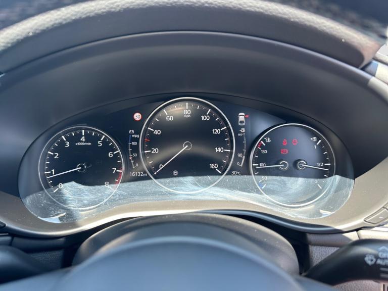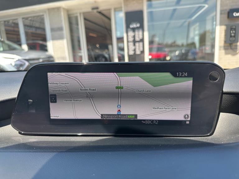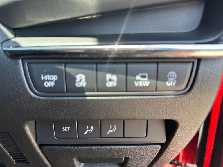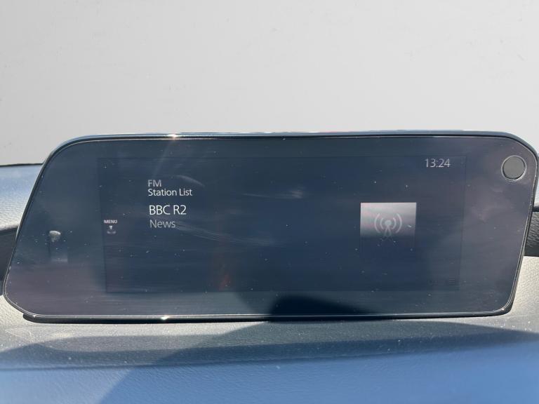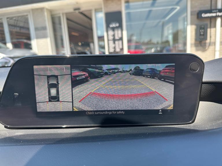 ..360 View Monitor, 7'' colour TFT display, 8.8'' Colour centre touch screen display with Mazda Connect infotainment, Apple car play/Android Auto, Audio transfer from bluetooth devices, Blind spot monitoring with rear cross traffic alert, Colour active driving display inc Windscreen projected,Traffic Sign Recognition, turn-by- turn navigation and Mazda Radar Cruise Control information, Cruising Traffic Support, Digital instrument cluster, Driver attention alert system, Driver monitoring system, E-call with GPS, Emergency stop signalling system, Engine start/stop button, Front and rear parking sensor with audible and visual warning, Front Cross Traffic Alert, Head up Display, Integrated bluetooth with steering wheel mounted controls, Intelligent speed assist, Lane keep assist system (LAS) with Lane departure warning system (LDWS), Mazda connected services, Mazda Navigation System with european mapping, Mazda Radar Cruise Control, Mobile App interface, Multimedia Commander, PAS, Service indicator, Traffic sign recognition (TSR), Trip computer, Cylinder Deactivation, i-stop, Mazda Multimedia System with AM / FM / DAB radio with 12 Speaker Bose sound system, bose centerpoint, bassmatch+audiopilot technology, Adaptive LED Headlights, Auto dimming driver's door mirrors, B-pillar garnish in piano black, Body coloured, electrically adjustable, heated auto power folding door mirrors with integrated indicators, Coming/leaving home lighting function, Dark metallic finish signature wing, Door mirrors with adjustable memory and tilt-down function when reversing, Dual chrome tailpipes tip, Dusk sensing headlights, Electric front/rear windows with one touch/auto up/down, Frameless auto dimming interior rear view mirror, Front body coloured bumper with black lower bezel, Front kodo turn signal, Gloss black finish front grille, Gloss black rear roof spoiler, LED indicator lights, LED third brake light, Privacy glass with dark tinting on rear side windows and rear window, Rain sensing front wipers with adjustable sensitivity and speed, Rear colour coded bumper with gloss black lower moulding, Rear fog lights, Rear side wing doors, Signature LED daytime running lights, Signature LED rear combination lights, Speed adjustable rear wash wiper with intermittent wipe, 12v electrical power outlet, 3 seat bench in 2nd row, 60/40 split fold down rear seats, Chrome interior trim accents with steering wheel centre bezel, surround of engine start / stop button and glove box handle,