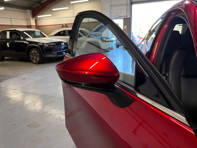 ..Driver Convenience,Blind Spot Monitoring with Rear Cross Traffic Alert,Colour Active Driving Display - Colour Head-Up Display,Driver Attention Alert - DAA,Mazda Radar Cruise Control,Multimedia Commander,Parking Sensors - Front and Rear,Reversing Camera,Trip Computer,Tyre Pressure Monitoring SystemEntertainment,12V Electrical Power Outlet,2 USB Charging Ports,7in Colour TFT Display,8.8in TFT Colour Centre Display,AM-FM-DAB Radio-MP3 Featuring 12 Speaker Bose Surround Sound System,Apple CarPlay and Android Auto,e-Call with GPS,Integrated Bluetooth,Mazda Connected Services,Mazda Navigation SystemExterior,18in Alloy Wheels - Grey,B-Pillar Garnish - Piano Black,Bumper - Front Body Coloured with Black Lower Bezel,Bumper - Rear Colour Coded with Gloss Black Lower Moulding,Door Mirrors - Electrically Adjustable-Heated-Auto Power-Folding,Door Mirrors with Adjustable Memory and Tilt-Down Function when Reversing,Door Mirrors with Auto Dimming Function,Dual Tailpipe - Chrome Tip,Electric Windows - Front and Rear with One-Touch Auto Down - Up,Emergency Tyre Repair Kit,Front Grille - Black Gloss Finish,Front Grille - Dark Metallic Finish Signature Wing,Kodo Turn Signal,Privacy Glass - Rear and Rear Side Windows,Rear Roof Spoiler - Gloss BlackInterior,Chrome Interior Trim Accents - Steering Wheel Centre Bezel - Surround Start-Stop and Glove Box Handle,Door Pockets - Driver - Front Passenger and Two Rear,Door Trim - Dark Vinyl Leather Insert,Drivers Seat - Powered with Tilt - Slide - Recline - Height and Lumbar Adjustment - and with Memory - Linked to Head-Up Display and Driver Side Mirror,Dual-Zone Climate Control Air Conditioning,Engine Start-Stop Button,Frameless Auto Dimming Rear View Mirror,Front Centre Storage with Two Cupholders,Front Seats - Heated with 3-Stage Settings,Gear Shift - Leather-Wrapped,Glovebox with Interior Illumination,Grab Handles - Driver - Front Passenger and Two Rear with Coat Hooks,Interior Colouration - Dashboard and Doorcards - Black with Dark Stitching,Interior Lighting - Front and Rear LED Lighting,Luggage Compartment - Light,Rain-Sensing Front Wipers with Adjustable Sensitivity and Speed,Rear Seats - Folding Centre Armrest Equipped with Two Cup Holders,Roof Headlining Dark - Ceiling and Pillars,Roof Mounted Sunglasses Holder,Seatback Pocket - Located on Rear of Front Passenger Seat,Seats - 60-40 Split Folding Rear,Seats - Front Passenger Manual Slide - Recline and Height Adjustment,Steering Wheel - Heated,Steering Wheel - Leather