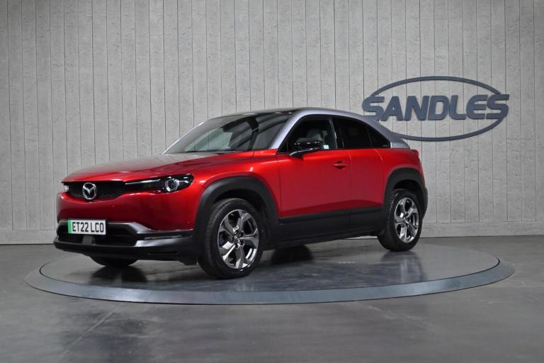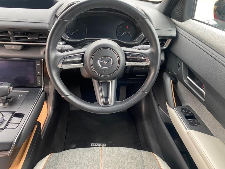 With only 12700 miles on the clock, this 2022 Mazda MX-30 GT Sport Tech is barely broken in. As an electric vehicle, it offers a modern driving experience. The GT Sport Tech trim adds a touch of luxury and advanced technology to this stylish Mazda. Enjoy your favourite music with the BOSE Surround Sound System, and stay cosy with the heated steering wheel. The colour active driving display with traffic sign recognition projects important information onto the windscreen, and the power tilt and slide sunroof brings the outside in. The Mazda MX-30 36 kWh battery, provides a maximum range of 124 miles when new. Charging is convenient, with a full charge at home taking just 5 hours using a 7kW charger. For those needing a quicker boost, public charging can take the battery from empty to 80% in just 48 minutes. These charging times mean you can quickly get back on the road.SERVICE HISTORY: 3services, last at 12,000 miles.Call, email or visit us today.