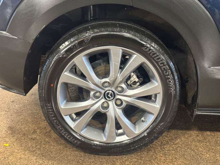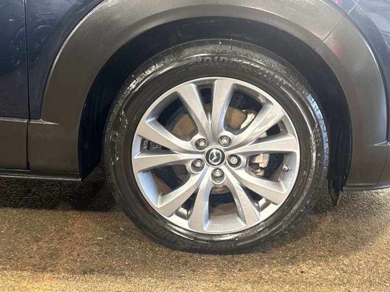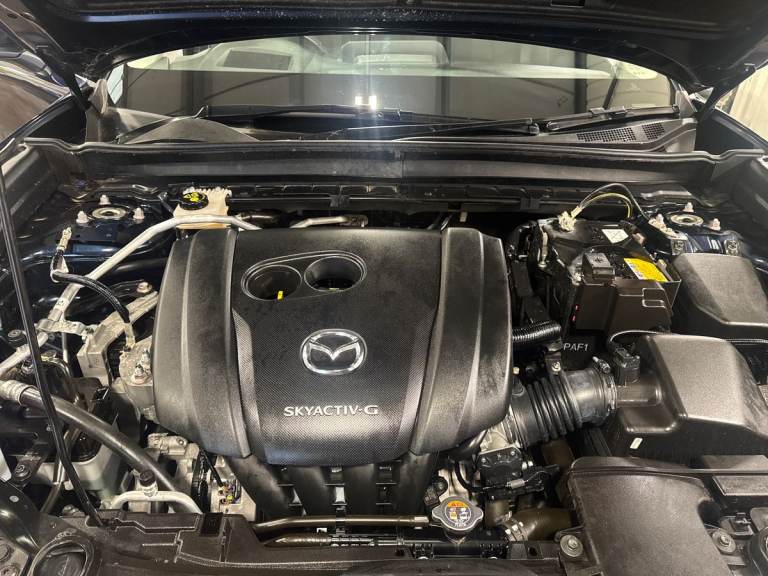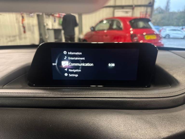 ..7'' TFT Colour driver instrument panel display, 8.8'' Colour centre touch screen display with Mazda Connect infotainment, Adaptive cruise control (Mazda radar cruise control) features stop and go, Apple car play/Android Auto, Blind spot monitoring with rear cross traffic alert, Drive mode selector, Driver attention alert system, E-call with GPS, Emergency stop signalling system, Engine start/stop button, Front and rear parking sensors, Integrated bluetooth, Integrated Mazda navigation system, Intelligent speed assist, Lane keep assist system (LAS) with Lane departure warning system (LDWS), Mazda connected services, PAS, Power lift gate, Reversing camera, Service indicator, Tailgate, Traffic sign recognition, Trip computer, Windscreen projected colour active driving display (HUD), Cylinder Deactivation, i-stop, 2 USB charging ports in front inner central armrest, AM / FM / DAB radio with 8 speakers, Multimedia Commander including separate volume dial, Steering wheel mounted audio/bluetooth controls, Auto dimming driver's door mirror, Auto headlight levelling, B-pillar and C-pillar garnishes in piano black finish, Body coloured, electrically adjustable, heated auto power folding door mirrors with integrated indicators, Chrome finish signature wing in front grille, Coming/leaving home lighting function, Dual chrome exhaust, Dusk sensing headlights, Electric front/rear windows with one touch auto up/down, Frameless auto dimming interior rear view mirror, Front kodo turn signal, Gloss black front grille, Gloss black rear roof spoiler, High beam assist, LED Headlights, LED signature daytime running lights, Privacy glass (rear side windows and rear screen), Rain sensing front wipers with adjustable speed and intermittent wipe, Rear fog lights, Rear side wing doors, Rear wiper, Signature LED rear combination lights, Third brake light, 12V power outlet in centre console, 3 seat bench in 2nd row, 60/40 split fold down rear seats, Chrome horn pad ring, Chrome interior trim accents with steering wheel centre bezel, surround of engine start / stop button and glove box handle, Cloth upholstery with interior accents, Dark cloth door panel inserts, Dashboard, door cards and front centre armrest in black cloth, Driver and front passenger visors with covered vanity mirror and driver ticket holder, Driver seat manual slide, recline, height and seat tilt adjust, Driver, front passenger and two rear door storage, Driver, Front passenger and two rear grab handles with