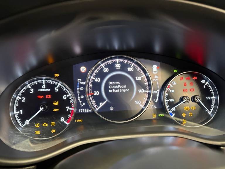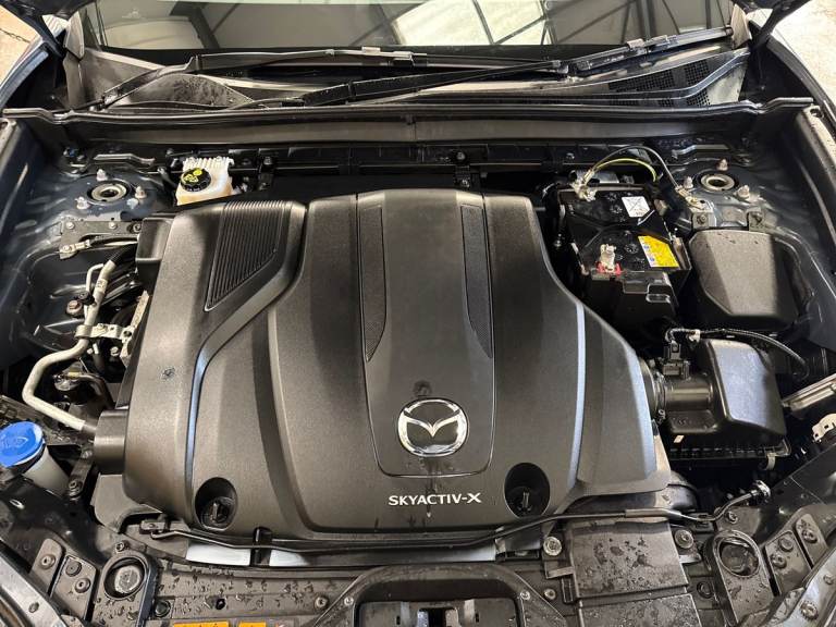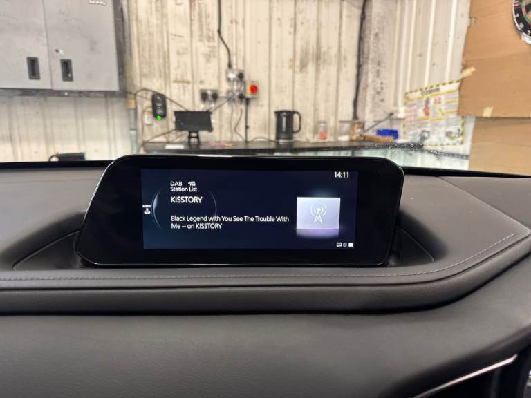 ..7'' TFT Colour driver instrument panel display, 8.8'' Colour centre touch screen display with Mazda Connect infotainment, Adaptive cruise control (Mazda radar cruise control), Apple car play/Android Auto, Blind spot monitoring with rear cross traffic alert, Driver attention alert system, E-call with GPS, Emergency stop signalling system, Engine start/stop button, Front and rear parking sensors, Integrated bluetooth, Integrated Mazda navigation system, Intelligent speed assist, Lane keep assist system (LAS) with Lane departure warning system (LDWS), Mazda connected services, PAS, Power lift gate, Reversing camera, Service indicator, Tailgate, Traffic sign recognition, Trip computer, Windscreen projected colour active driving display (HUD), i-stop, 2 USB charging ports in front inner central armrest, AM / FM / DAB radio with 8 speakers, Multimedia Commander including separate volume dial, Steering wheel mounted audio/bluetooth controls, Adaptive LED Headlights, Auto dimming driver's door mirror, Auto headlight levelling, B-pillar and C-pillar garnishes in piano black finish, Body coloured, electrically adjustable, heated auto power folding door mirrors with integrated indicators, Chrome finish signature wing in front grille, Coming/leaving home lighting function, Dual chrome exhaust, Dusk sensing headlights, Electric front/rear windows with one touch auto up/down, Frameless auto dimming interior rear view mirror, Front kodo turn signal, Gloss black front grille, Gloss black rear roof spoiler, High beam assist, LED signature daytime running lights, Privacy glass (rear side windows and rear screen), Rain sensing front wipers with adjustable speed and intermittent wipe, Rear fog lights, Rear side wing doors, Rear wiper, Signature LED rear combination lights, Third brake light, 12V power outlet in centre console, 3 seat bench in 2nd row, 60/40 split fold down rear seats, Chrome horn pad ring, Chrome interior trim accents with steering wheel centre bezel, surround of engine start / stop button and glove box handle, Cloth upholstery with interior accents, Dark cloth door panel inserts, Dashboard, door cards and front centre armrest in black cloth, Driver and front passenger visors with covered vanity mirror and driver ticket holder, Driver seat manual slide, recline, height and seat tilt adjust, Driver, front passenger and two rear door storage, Driver, Front passenger and two rear grab handles with coathooks, Dual zone climate control air conditioning with