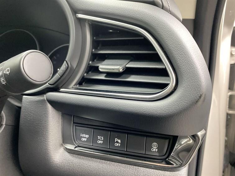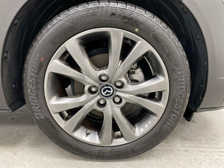 12V power outlet in centre console,18"" Bright alloy wheels,2 USB charging ports in front inner central armrest,3 point ELR front seat belts x2 with pretensioners,3 point ELR rear seat belts,3 seat bench in 2nd row,60/40 split fold down rear seats,7"" TFT Colour driver instrument panel display,8.8"" Colour centre touch screen display with Mazda Connect infotainment,Adaptive cruise control (Mazda radar cruise control),Adaptive LED Headlights,AM / FM / DAB radio with 8 speakers,Anti-lock braking system (ABS),Apple car play/Android Auto,Auto dimming driver's door mirror,Auto headlight levelling,B-pillar and C-pillar garnishes in piano black finish,Blind spot monitoring with rear cross traffic alert,Body coloured, electrically adjustable, heated auto power folding door mirrors with integrated indic,Chrome finish signature wing in front grille,Chrome horn pad ring,Chrome interior trim accents with steering wheel centre bezel, surround of engine start / stop butto,Cloth upholstery with interior accents,Coming/leaving home lighting function,Dark cloth door panel inserts,Dashboard, door cards and front centre armrest in black cloth,Driver and front passenger visors with covered vanity mirror and driver ticket holder,Driver attention alert system,Driver seat manual slide, recline, height and seat tilt adjust,Driver, front passenger and two rear door storage,Driver, Front passenger and two rear grab handles with coathooks,Drivers knee airbag,DSC - Dynamic Stability Control,Dual chrome exhaust,Dual zone climate control air conditioning with rear air vents,Dusk sensing headlights,E-call with GPS,Electric front/rear windows with one touch auto up/down,Electronic parking brake with auto disengage function and auto hold function,Emergency stop signalling system,Emergency tyre repair kit,Engine start/stop button,Folding rear centre armrest with two cup holders,Frameless auto dimming interior rear view mirror,Front and rear (x3) head restraints,Front and rear curtain airbags,Front and rear LED lighting,Front and rear parking sensors,Front armrest,Front centre storage with two cupholders with lid,Front dual stage driver and single stage front passenger airbags,Front kodo turn signal,Front passenger airbag cut-off switch,Front passenger seatback pockets,Front passengers seat manual slide, recline and height adjustment,Front side airbags,Front smart city brake support,G-Vectoring control plus,Gear shift indicator,Gloss black front grille,Gloss black rear roof spoiler...
