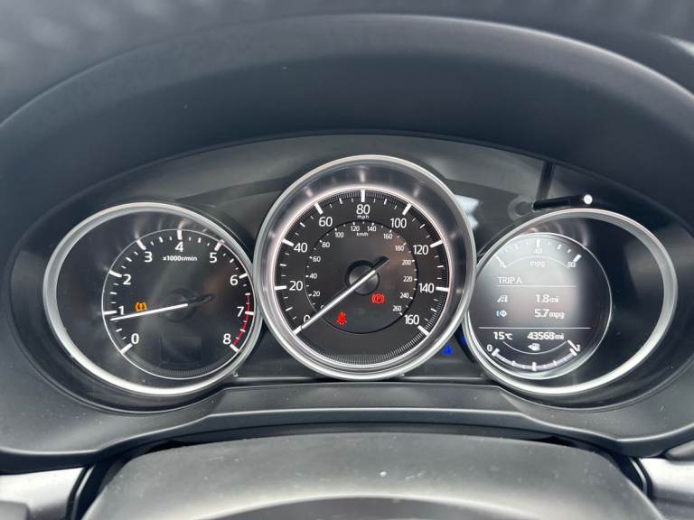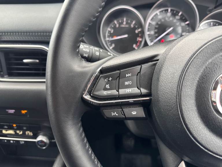 ..Driver Convenience,Adaptive Cruise Control,Blind Spot Monitoring with Rear Cross Traffic Alert,Front Parking Sensors,Multimedia Commander,Rear Parking Sensors,Service Indicator,Trip Computer,Tyre Pressure Monitoring SystemEntertainment,10.25in TFT Colour Centre Display with Mazda Connect Infotainment,12V Electrical Power Outlet,Apple CarPlay and Android Auto,Connected Services,Digital Radio,High Meter TFT Display,Integrated Bluetooth System,Integrated Mazda Navigation System with 5-Years Free European Map Updates,Luggage Compartment - Power Outlet,OEM Sound System,Shark Fin Antenna,USB Connection - 2x Front and 2x Rear InputsExterior,17in Alloy Wheels - Silver,B-Pillar and C-Pillar Garnish - Satin Black,Body Coloured Door Mirrors,Bumpers - Front and Rear Body Coloured with Black Lower Bumper Mouldings,Dual Tailpipe - Chrome Tip,Electric Windows - Front and Rear,Emergency Tyre Repair Kit,Gloss Black Finish Grille,Heated Auto Power-Folding Door Mirrors,Privacy Glass - Rear and Rear Side Windows,Rear Roof Spoiler - Body Coloured,Side Mouldings - Satin Black,Signature Wing - Bright FinishInterior,Auto Dimming Rear View Mirror,Dashboard Panel - Gunmetal Inlay,Door Panel Trim - Cloth with Gunmetal Inlay,Door Pockets - Driver and Front Passenger,Dual Zone Climate-Controlled Air-Conditioning with Rear Air Vents,Engine Start-Stop Button,Flat Fit Cargo Board,Front Centre Storage with Two Cupholders,Gear Shift - Leather-Wrapped,Glovebox with Interior Illumination,Grab Handles - Front Passenger and Two Rear with Coat Hooks,Interior LED Lighting,Karakuri Tonneau Cover,Luggage Compartment - Light,Rain-Sensing Front Wipers with Adjustable Sensitivity and Speed,Rear Seats - Manual Recline Adjustment,Roof Headlining - Light - Ceiling and Pillars,Roof Mounted Sunglasses Holder,Seat - 40-20-40 Karakuri Fold Flat Rear,Seatback Pocket - Driver and Front Passenger,Seats - Drivers Manual Lumbar Adjustment,Seats - Drivers Manual Slide-Recline and Height Adjustment,Seats - Front Passengers Manual Slide-Recline and Height Adjustment,Seats Rear - Folding Centre Armrest Equipped with USB Input,Steering Wheel - Leather Wrapped,Steering Wheel - Mounted Audio and Bluetooth Controls,Steering Wheel - Tilt and Height Adjustment,Sunvisors - Drivers and Front Passengers with Covered Vanity Mirror and Drivers Ticket Holder,Three Height Adjustable Head RestraintsEntertainment,10.25in TFT Colour Centre Display with Mazda Connect Infotainment,12V Electrical Power Outlet,Apple CarPlay and