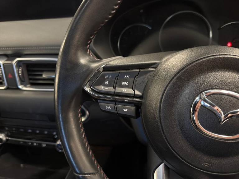 ..Driver Convenience,Adaptive Cruise Control,Blind Spot Monitoring with Rear Cross Traffic Alert,Front Parking Sensors,Multimedia Commander,Rear Parking Sensors,Reversing Camera,Service Indicator,Trip Computer,Tyre Pressure Monitoring System,Windscreen Projected Colour Active Driving Display - HUD with MemoryEntertainment,10.25in TFT Colour Centre Display with Mazda Connect Infotainment,12V Electrical Power Outlet,7in Colour TFT Display,Apple CarPlay and Android Auto,Connected Services,Digital Radio,Integrated Bluetooth System,Integrated Mazda Navigation System with 5-Years Free European Map Updates,Luggage Compartment - Power Outlet,Premium BOSE Sound System,QI Wireless Mobile Phone Charging,Shark Fin Antenna,USB Connection - 2x Front and 2x Rear InputsExterior,19in Alloy Wheels - Exclusive Black,B-Pillar and C-Pillar Garnish - Gloss Black,Black Mirror Caps,Bumpers - Front and Rear Body Coloured with Gloss Black Lower Bumper Mouldings,Electric Windows - Front and Rear,Emergency Tyre Repair Kit,Front Grille Accent Colour - Red,Gloss Black Finish Grille,Heated Auto Power-Folding Door Mirrors,Large Double Tailpipe - Chrome Tip,Larger Tail Pipe Garnish,Privacy Glass - Rear and Rear Side Windows,Rear Roof Spoiler - Body Coloured,Signature Wing - Gloss Black,Sunroof - Power Tilt and Slide,Tire Arch and Side Mouldings - Gloss BlackInterior,Auto Dimming Rear View Mirror,Black Honeycomb Interior Decoration Panel,Dashboard Panel - Black Honeycomb Inlay,Door Panel Trim - Vinyl with Black Honeycomb Inlay,Door Pockets - Driver and Front Passenger,Door Trim Decoration Panel - Black Honeycomb,Drivers Seat - Power Slide - Recline - Height and Lumbar Adjustment with Memory Function linked to Smart Key,Dual Zone Climate-Controlled Air-Conditioning with Rear Air Vents,Engine Start-Stop Button,Flat Fit Cargo Board,Front Centre Storage with Two Cupholders,Front Passengers Seat Power Slide Recline and Height Adjustment,Front Wiper De-Icer,Gear Shift - Leather-Wrapped,Glovebox with Interior Illumination,Grab Handles - Front Passenger and Two Rear with Coat Hooks,Heated Front Seats with 3-Stage Settings,Heated Steering Wheel,Interior LED Lighting,Karakuri Tonneau Cover,Luggage Compartment - Light,Power Liftgate,Rain-Sensing Front Wipers with Adjustable Sensitivity and Speed,Rear Seats - Manual Recline Adjustment,Red Stitching and Accents on Door Trim - Knee Pad - Console Lid - Steering Wheel and Shift Boots,Roof Headlining Dark - Ceiling and Pillars,Roof Mounted Sunglasses