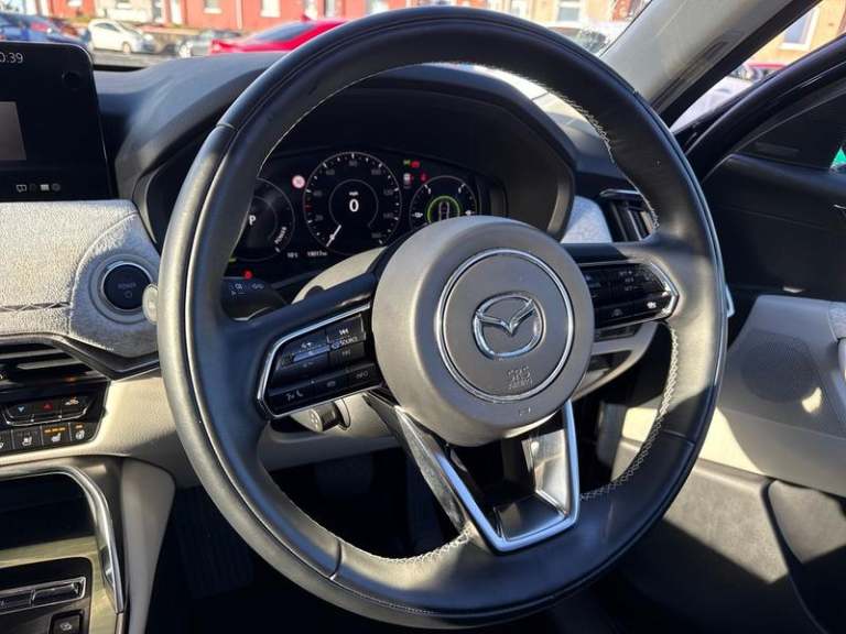 12.3in Colour TFT Display, 12V Power Socket - 1x Front and 1x Boot, AM-FM-DAB Radio Featuring 12 Speaker Bose Surround Sound System with Bose CentrePoint - BassMatch and AudioPilot Technology, Connected Services, Integrated Bluetooth System, Mazda Navigation System, USB-C Inputs - 2x Front and 2x Rear, Wireless Apple CarPlay and Wired Android Auto, e-Call with GPS, Blind Spot Monitoring with Rear Cross Traffic Alert, Cruise Control, Driver Attention Alert - DAA, Head-Up Display, Mazda Driver Personalisation System, Mi-Drive, Multimedia Commander, Parking Sensors - Front and Rear with Audible and Visual Warning, Reversing Camera, Traffic Sign Recognition, Trip Computer, Tyre Pressure Monitoring System, 20in Alloy Wheels - Black Metallic Machined, B-Pillar and C-Pillar Garnish - Gloss Black, Body Coloured Door Mirrors, Door Mirrors - Electrically Adjustable - Heated - Auto Power-Folding with Auto Dimming Drivers Mirror and Memory, Door Mirrors - Memory, Electric Windows - Front and Rear, Emergency Tyre Repair Kit, Front Grille - Gloss Black - Bar Type, Front Side Garnish -PHEV- Chrome, Headlight Lense - Chrome, Low Washer Fluid Warning Lamp, Signature Wing - Chrome, Wheel Arch and Side Mouldings - Body Coloured, Headlights - Coming-Leaving Home, Headlights - Dusk-Sensing Lights, Headlights - LED with Auto Headlight Levelling, Headlights - Washers, High Beam Control, LED Rear Signature Combination Lights, LED Signature Daytime Running Lights, Ambient Lighting, Centre Console Panel
