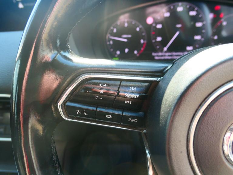 This 2023 Mazda CX-60 e-SKYACTIV D Exclusive-Line presents an exceptional ownership proposition with its remarkably low mileage of just 15,405 miles. As a single owner vehicle, this Euro 6 compliant CX-60 boasts a powerful yet efficient 3.3 litre diesel hybrid engine, offering a towing weight of 2500 kg. The Exclusive Line trim ensures a refined driving experience, enhanced by features such as dusk sensing headlights, a heated steering wheel for added comfort, and an integrated Bluetooth system for seamless connectivity. Safety is paramount, with Blind Spot Monitoring systems including Vehicle Exit Warning and Rear Cross Traffic Alert providing comprehensive awareness.This Mazda CX-60 stands out with its impressive fuel economy of 57 mpg, a significant advantage for everyday driving and longer journeys. Its low CO2 emissions further contribute to its appeal, making it an environmentally conscious choice. The generous boot space offers practicality for all your needs, whether for family outings or daily errands. Furthermore, its placement in a low insurance group highlights its affordability and accessibility, making this CX-60 a compelling option that offers superior value compared to similar vehicles on the market.