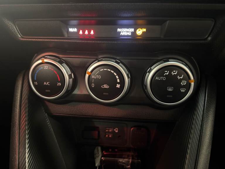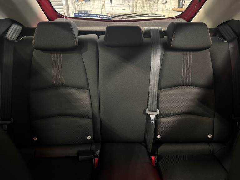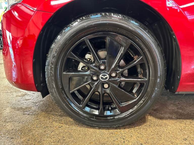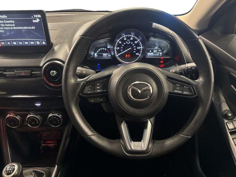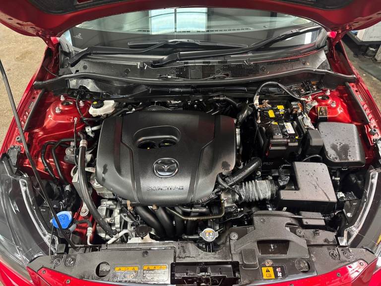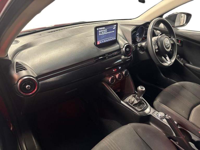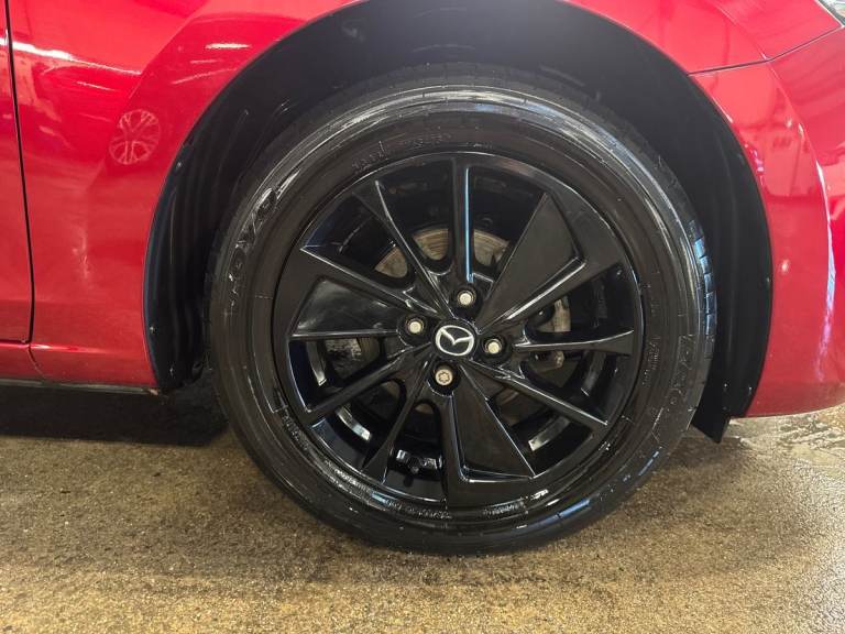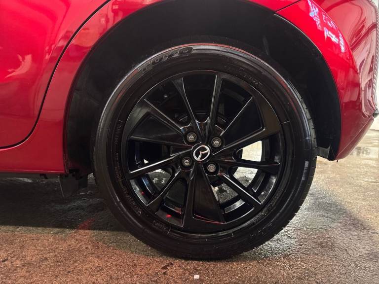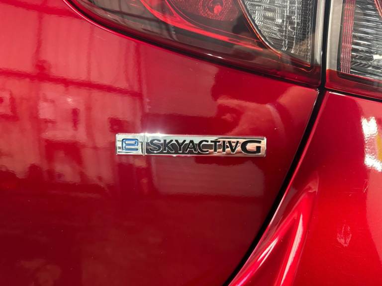 ..Adjustable speed limiter, Analogue speed display meter, Cruise control, Digital instrument cluster, Digital rev counter, E-call, Emergency stop signalling system, Engine start/stop button, Integrated bluetooth, Lane departure warning system, Lane keep assist, Mazda connect with 8'' colour touch screen, Navigation system, PAS, Rear parking sensor with audible and visual warning, Reversing camera, Service indicator, Tailgate, Trip computer, Wireless Apple CarPlay and wired Android Auto, i-stop, Mazda M hybrid, AM/FM/DAB radio with 6 speakers with USB and AUX inputs, Multimedia Commander including separate volume dial, Steering wheel mounted audio/bluetooth controls, Auto dimming rear view mirror, Auto headlight levelling, Black door mirrors, Black Shark-fin antenna, Body coloured front bumper with black lower bezel, Body coloured rear bumper with black lower mouldings and red accent, Coming/leaving home lighting function, Dusk sensing headlights, Electric adjustable/heated/folding door mirrors, Electric front/rear windows with one touch auto up/down for driver's window, Front honeycomb grill with red accent, Gloss black finish signature wing, Halogen daytime running lights, Heated rear window, LED Headlights, LED indicator lights, LED third brake light, Rain sensing front wipers with adjustable sensitivity and speed, Rear side wing doors, Rear wiper, 3 seat bench in 2nd row, 60/40 split rear seats, Black/red air vent accents, Climate control air conditioning, Driver, Front passenger and two rear grab handles with coathooks, Drivers seat manual slide recline and height adjustment, Drivers/front passengers covered vanity mirrors and drivers ticket holder, Front centre storage with two cupholders, Front head restraints, Front passenger and driver door pockets, Front passenger seat manual slide, recline and height adjust, Front passenger seatback pockets, Gear shift indicator, Glovebox, Interior courtesy light with integrated spotlight, ISOFIX child seat anchorage points attached on outer rear seats, Leather handbrake, Leather steering wheel and gear knob, Luggage compartment light, Premium cloth upholstery, Single front passenger seat, Three height adjustable rear head restraints, Tilt/telescopic adjustable steering wheel, 2x3 point front seatbelts with pre-tensioners, 3 point seatbelts on all rear seats, Anti-lock braking system (ABS), Collision mitigation braking system, Dynamic stability control + Traction control, ESP, Front and rear curtain airbags,