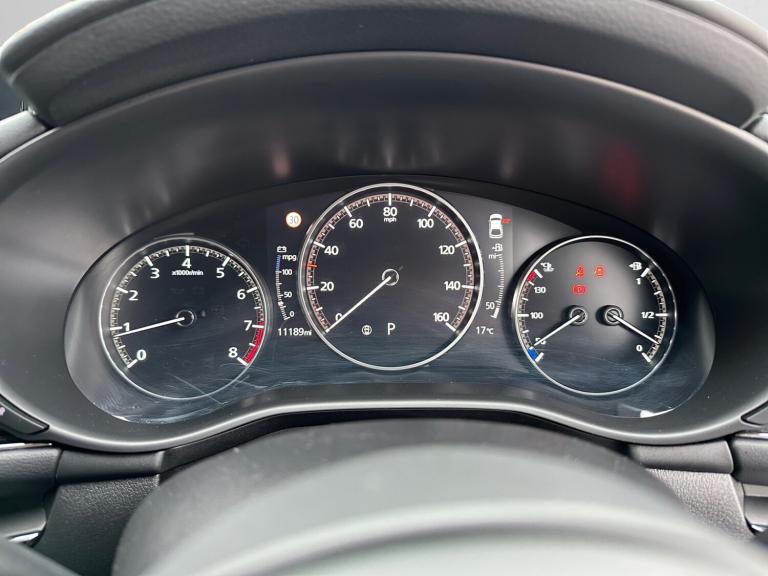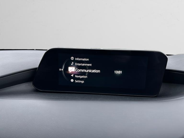 ..7'' colour TFT display, 8.8'' Colour centre touch screen display with Mazda Connect infotainment, Apple car play/Android Auto, Audio transfer from bluetooth devices, Blind spot monitoring with rear cross traffic alert, Colour active driving display inc Windscreen projected,Traffic Sign Recognition, turn-by- turn navigation and Mazda Radar Cruise Control information, Digital instrument cluster, Driver attention alert system, E-call with GPS, Emergency stop signalling system, Engine start/stop button, Front and rear parking sensor with audible and visual warning, Head up Display, Integrated bluetooth with steering wheel mounted controls, Intelligent speed assist, Lane keep assist system (LAS) with Lane departure warning system (LDWS), Mazda connected services, Mazda Navigation System with european mapping, Mazda Radar Cruise Control, Mobile App interface, Multimedia Commander, PAS, Reversing camera, Service indicator, Tailgate, Traffic sign recognition (TSR), Trip computer, Cylinder Deactivation, i-stop, Mazda Multimedia System with AM / FM / DAB radio with 8 speakers, Adaptive LED Headlights, Auto dimming driver's door mirrors, B-pillar garnish in piano black, Body coloured, electrically adjustable, heated auto power folding door mirrors with integrated indicators, Coming/leaving home lighting function, Dark metallic finish signature wing, Dual chrome tailpipes tip, Dusk sensing headlights, Electric front/rear windows with one touch/auto up/down, Frameless auto dimming interior rear view mirror, Front body coloured bumper with black lower bezel, Front kodo turn signal, Gloss black finish front grille, Gloss black rear roof spoiler, LED indicator lights, LED third brake light, Privacy glass with dark tinting on rear side windows and rear window, Rain sensing front wipers with adjustable sensitivity and speed, Rear colour coded bumper with gloss black lower moulding, Rear fog lights, Rear side wing doors, Signature LED daytime running lights, Signature LED rear combination lights, Speed adjustable rear wash wiper with intermittent wipe, 12v electrical power outlet, 3 seat bench in 2nd row, 60/40 split fold down rear seats, Black cloth door panel inserts, Chrome interior trim accents with steering wheel centre bezel, surround of engine start / stop button and glove box handle, Cloth upholstery, Dark roof headlining, ceiling and pillars, Driver, front passenger and two rear door pockets, Driver, Front passenger and two rear grab handles with coathooks,
