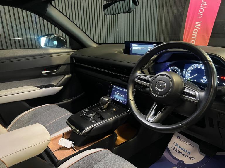 This 2023 Mazda MX-30 35.5kWh Exclusive-Line SUV is a sleek electric vehicle with only 11931 miles on it, making it the perfect choice for eco-conscious drivers. This ULEZ compliant SUV features 5 doors and 5 seats, offering ample space for passengers and cargo. Equipped with a 12V Electrical Power Outlet, Apple CarPlay and Android Auto, and Integrated Bluetooth, this vehicle ensures a seamless driving experience. Additionally, its DC Socket allows for Rapid Charging up to 50KW, ensuring you spend less time at charging stations. With Mazda Connect and an 8.8in TFT Colour Centre Display, staying connected and entertained on the road has never been easier. This SUV is the perfect combination of style, performance, and sustainability, making it a top choice for those in search of a reliable and environmentally-friendly vehicle. Features Include: , 12v electrical power outlet, apple carplay and android auto, dc socket for rapid charging up to 50kw, integrated bluetooth, mazda connect with 8.8in tft colour centre display, mazda connected services, mazda navigation system, usb input, e-call with gps, 18in alloy wheels - bright metallic, b-pillar and c-pillar garnish - piano black, door mirrors - black - electrically-adjustable - heated - auto power folding with auto-dimming drivers mirror and adjustable memory with tilt-down function when in reverse, electric windows - front, emergency tyre repair kit, privacy glass - rear and rear side windows, radiator grille - black, rear roof spoiler - gloss black, abs - anti lock braking system, airbags - front driver knee, airbags - front dual stage driver and single stage front passenger, airbags - front passenger cut-off switch, airbags - front side, airbags - front and rear curtain airbags, coming home-leaving home lights, dsc - dynamic stability control, electronic parking brake with auto hold function and auto-disengage function, emergency lane keeping with blind spot assist, emergency lane keeping with road keep assist, emergency stop signalling system - ess, hill hold assist, isofix child seat anchorage for outer rear seats, lane keep assist with lane departure warning system, pre-crash safety - smart brake support - sbs, rear wiper, remote central locking with deadlocking and automatic door lock when driving, seatbelt reminder audible warning, smart keyless entry, tcs - traction control system, thatcham accredited alarm and immobiliser, e g-vectoring control plus - egvc plus, adaptive cruise control, blind spot