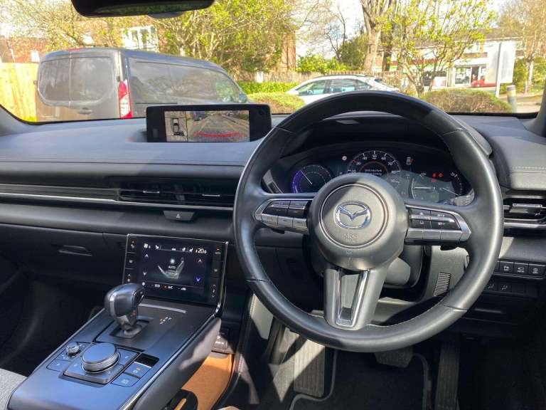 This 2023 Mazda MX-30 Makoto is presented with an exceptionally low mileage of just 5339 miles, a significant advantage for its age, and benefits from a full dealership service history, with its last service completed on 2024-10-25 at 1736 miles. This electric vehicle boasts a 36 kWh battery offering a maximum range of 124 miles when new. Charging is convenient, with a full charge at home on a 7kW charger taking approximately 4 hours, and rapid charging to 80% from empty achievable in just 33 minutes at a public station. The vehicle comes with a 6 months warranty and a 12 months MOT will be provided on purchase. Notable features include a heated steering wheel, Blind Spot Monitoring, Apple CarPlay and Android Auto integration, Adaptive Cruise Control, and Emergency Lane Keeping with Blind Spot Assist.The Mazda MX-30 Makoto offers a compelling package for electric driving. Its impressive suite of advanced driver aids, such as Adaptive Cruise Control and Emergency Lane Keeping with Blind Spot Assist, enhances safety and reduces driver fatigue, setting it apart from many other vehicles in its class. The inclusion of Apple CarPlay and Android Auto ensures seamless connectivity for your devices, making every journey more enjoyable. With its combination of low mileage, comprehensive service history, and desirable features, this electric MX-30 represents a well maintained and thoughtfully equipped choice for those seeking an efficient and modern driving experience.