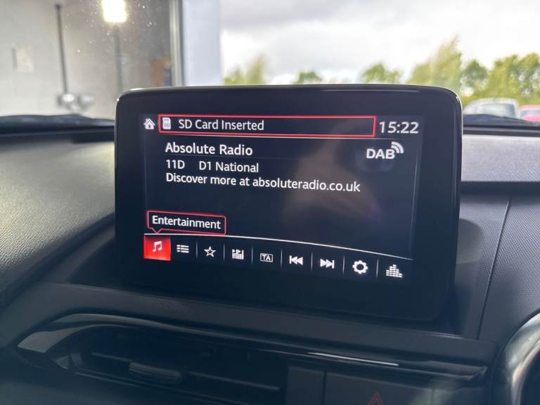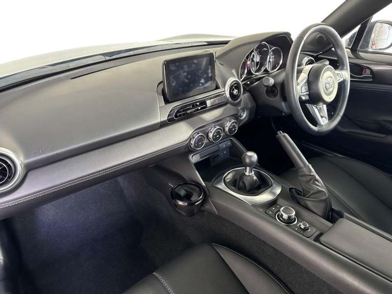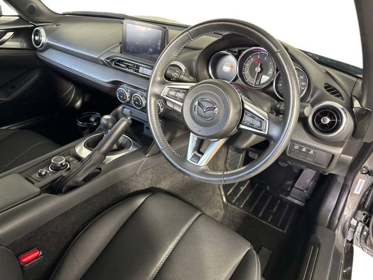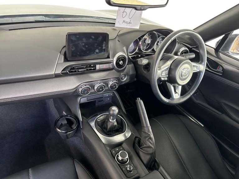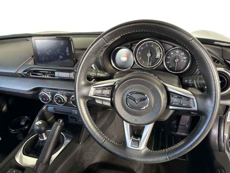 ..7'' colour touch screen with Mazda connect infotainment, Aha and stitcher app, Analogue speedometer, Apple car play/Android Auto, Cruise control + speed limiter, Driver alert system, eCall emergency call system, Emergency stop signalling system, Engine start/stop button, Hands free phone preparation, Integrated bluetooth with hands-free calling, bluetooth audio and easy access to phone contacts, Integrated navigation system, Lane departure warning system, PAS, Rear parking sensor, Service indicator, Traffic sign recognition, Trip computer, Water temperature gauge, Dynamic stability control, I-ELOOP, i-stop, 2 USB/aux input socket, Multimedia Commander including separate volume dial, Premium Bose sound system with 9 speakers with 2 in each front headrest, AM/FM/DAB radio and MP3, Steering wheel mounted audio/bluetooth controls, Adaptive front lighting system, Auto dimming rear view mirror, Automatic headlamp levelling, Body colour bumpers, Body colour co ordinated interior upper door trim, Body coloured electric/heated door mirrors, Coming/leaving home lighting function, Dual exhaust pipes, Dusk sensitive headlamps, Electric front windows/one touch facility, LED 3rd brake light, LED daytime running lights, LED Headlights, LED indicator lights, LED rear lights, Piano Black fashion bars, Rain sensing front wipers, Rear boot, 12V socket, Centre console storage box, Chrome Air conditioning dials, Climate control air conditioning, Coin Box, Driver and front passenger sunvisors with covered vanity mirror and driver ticket holder, Driver seat manual slide, recline and tilt adjustment, Front centre armrest, Front head restraints, Gear shift indicator, Heated front seats, in 3 heat levels, Interior courtesy light, ISOFIX front passenger seat child seat compliance, Leather gear knob, Leather steering wheel, Leather upholstery, Lockable rear centre box with lid, Passenger seat + manual slide/recline adjust, Single front passenger seat, Tilt/telescopic steering column, Two cupholders, 3 point ELR front seatbelts with pretensioners, ABS+Electronic Brake force Distribution, Deployable Hood System (DHS), Driver and front passenger airbags, Driver and passenger seatbelt reminder audible warning, Hill hold assist, Passenger airbag deactivate switch, SCBS - Smart City Brake Support, rear plus front with autonomous emergency braking, Side airbags, Traction control, Tyre pressure monitor, Remote central locking with deadlocking and remote boot release, Smart keyless entry,