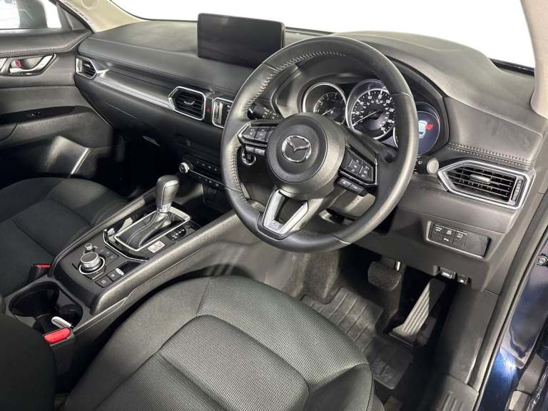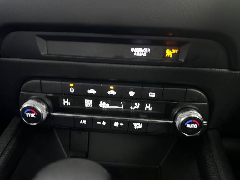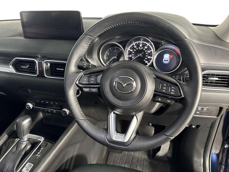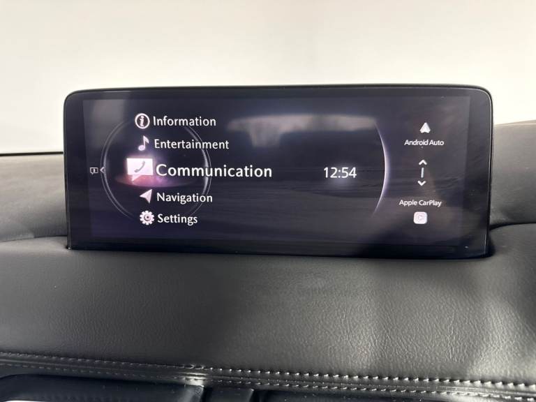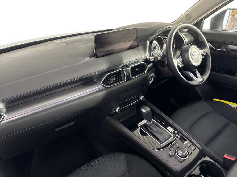 ..10.25'' display with Mazda Connect infotainment, Advanced blind spot monitoring, Bluetooth connectivity with voice control, Collision prevention assist, Connected services, Cruising Traffic Support, Drive mode selector, Electric power steering, Emergency stop signalling system, Engine start/stop button, Forward collision warning, Front and rear parking sensors, High meter TFT display, Integrated navigation system, Intelligent speed assist, Lane departure warning system, Lane keep assist, Radar cruise control with Stop and Go, Rear cross traffic alert, Service indicator, Trip computer, Wireless apple car play/android Auto, Cylinder Deactivation, i-stop, 6 speakers, AM/FM radio, Bluetooth audio streaming, DAB Digital radio, Multimedia Commander including separate volume dial, Steering wheel mounted audio controls, Adaptive front lighting system, Auto dimming rear view mirror, Automatic headlights, Body colour door mirrors, Body colour roof spoiler, Body coloured front and rear black lower bumper mouldings, Cloth with gunmetal inlay door trim panel, Coming/leaving home lighting function, Door mirror integrated indicators, Dual chrome tailpipes, Electric front/rear windows with one touch auto up/down, Front grille in gloss black finish with chrome signature wing, Gunmetal inlay dashboard panel, High beam assist, Intermittent rear wash/wipe, LED auto levelling, LED daytime running lights, LED front fog lights, LED Headlights, LED third brake light, Power folding and heated door mirrors, Privacy glass (rear side windows only), Rain sensing front wipers, Rear side wing doors, Satin black B and C pillars, Satin black side mouldings, Scuff plates, Shark fin antenna, Signature LED rear combination lights, Variable intermittent front wash/wipe, 12v electrical power outlet, 3 seat bench in 2nd row, 40:20:40 Karakuri fold-flat seat system, Cargo room flat floor board with waterproof undertray, Driver seat lumbar adjustment, Driver seat manual slide, recline and height adjust, Driver, Front passenger and two rear grab handles with coat hooks, Driver/passenger front seatback pockets, Driver/passenger sunvisors + illuminated vanity mirrors (drivers with ticket holder), Dual zone climate control, Folding centre armrest with 2 cup holders, Front and rear door pockets, Front centre storage with two cupholders, Front passenger seat manual slide, recline and height adjust, Height adjustable passenger seat, Humidity sensor, Illuminated glovebox, Interior dome light with