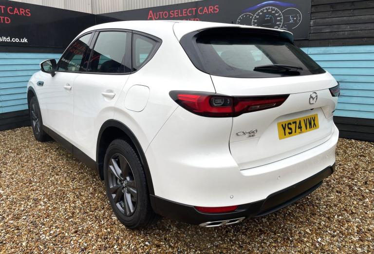 Mazda CX60 Exclusive line suv, 2.5 e skyactive 17.8 kwh, hybrid petrol electric, 4wd, Eu6, automatic 5 door, in Arctic white with full black heated seats, Mazda satellite navigation,head up display, mutifunction heated leather steering wheel with paddle shift option, cruise control, voice recognition blue tooth hands free phone system, Automatic with Mi drive options from sport, normal, EV, or off road, electric windows with electric power folding mirrors, Dab radio with usb and aux ports, multimedia command, 8 speaker system, Apple and Android car play, integrated bluetooth system, e call with gps, Smart brake assist, lane keep and blind spot assist with cross traffic alert, traffic sign recognition, driver attention assist, Active bonnet, dynamic stability control, traction control, 4WD with hill decent control, electronic handbrake with auto hill hold and hill launch assist, 18 alloys in grey metallic with premium matching tyres and locking wheel key, auto or remote open close tailgate, LED head lamps with auto levelling, dusk sensing auto lights with high beam assist, leaving and comeing home lamps, head lamp washers, LED signature day time running lights, LED signature rear combination lights, duel zone climate control, smart keyless entry exit. fitted premium carpet mats to the front and rear, Stunning car as you would expect with only 900 miles. last serviced 06 02 2026 by Mazda and comes with the remainder of the 3 year manufacturers warranty and 8 year battery warranty, both chargers are in the car. Supplied with both keys, Owner s book pack and wallet, locking wheel key, Free HPI report available on request, Extendable warranties available, Minimum of 6 months Mot on all cars, Safety check and pre delivery inspection, Low rate finance options are available, call for details. Subject to Status. Part Exchange Welcome, Finance Arranged. Buy with confidence all our cars are HPI checked, safety checked and come fully professionally valeted. 12 24 or 36 month WARRANTIES available. Viewing Any Day Time by appointment or for more photos and information. We do not operate an organised distance sales scheme. We have only agreed to sell and deliver the car to you without you viewing the car first as an exception to the company policy in view of the the fact that you live too far away or are unable to drive the distance or take the time off work. This means that your purchase of the vehicle will not be deemed as a distance sale, and you will not be