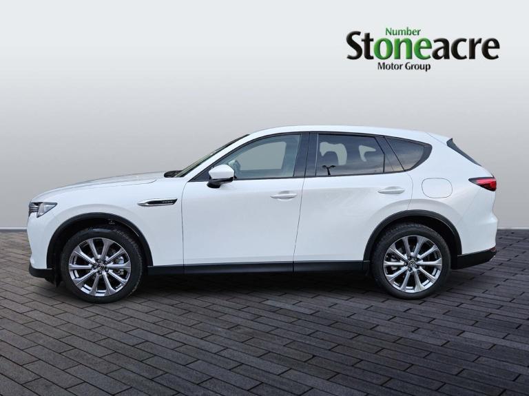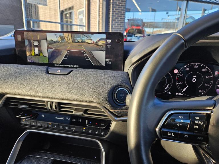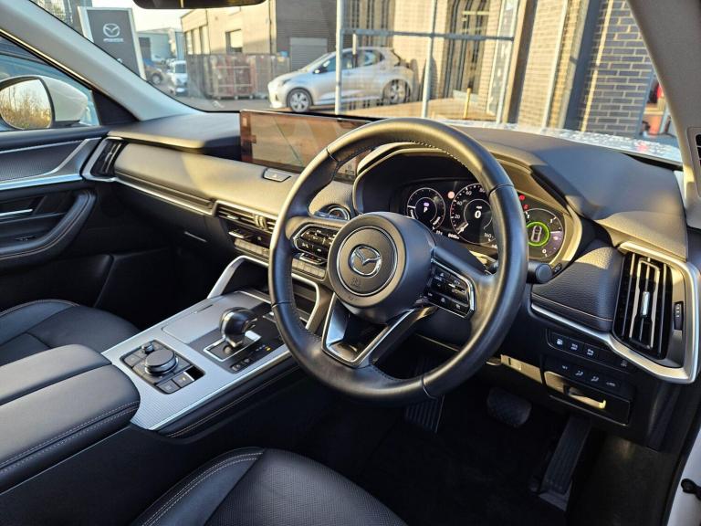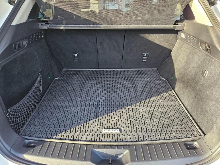 This 2024 Mazda CX-60 e-SKYACTIV Exclusive-Line presents an exceptional ownership proposition with its remarkably low mileage of just 5237 miles, having had only one owner since new. This four wheel drive petrol plug in hybrid, finished in the Exclusive Line trim, boasts a powerful 2.5L engine and meets Euro 6 emissions standards. You'll appreciate the convenience of the integrated Bluetooth system, dusk sensing headlights that automatically illuminate, and a helpful head up display to keep your eyes on the road. Safety is enhanced with blind spot monitoring and rear cross traffic alert, while smart keyless entry adds to the effortless user experience.The Mazda CX-60 offers a compelling blend of performance and practicality. Its impressive acceleration, capable of reaching 0-62mph in a swift 5.8 seconds, sets it apart from many other vehicles in its class. Furthermore, the generous boot space ensures you have ample room for luggage or shopping, making it a versatile choice for everyday use and longer journeys. With a substantial towing weight of 2500 kg, this CX-60 is also well equipped for towing caravans or trailers.