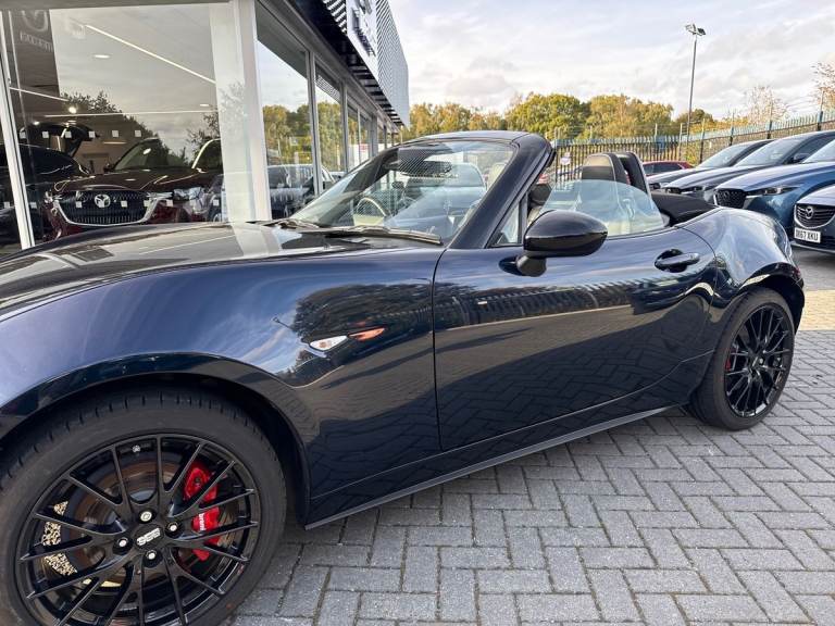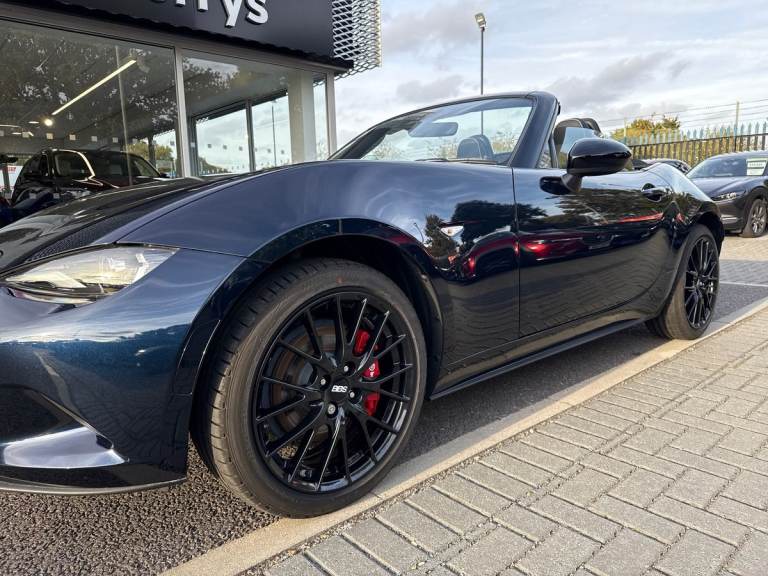 Finished In the Stunning Deep Crystal Blue With Heated Recaro Sports Seats, This is our stunning Example of a MX-5 Homura, We had Been Using it for demonstrations with customers and now it is sadly time to replace with a newer model. Fully Serviced with us for its First service. Supplies With 2 Keys. Features Include: Led Lights, Heated Recaro Sports Seats, BBS Alloy Wheels Finished In Gloss Black, SATNAV, DAB Radio, Colour Infotainment System, Air Conditioning, Bluetooth, Electric Windows, Manual Black Soft Top Roof, Rear Parking Sensors, Apple CarPlay/Android Auto, USC Charging, Keyless Entry and Start, I-Stop, Electric Door Mirrors, Heated Door Mirrors, Auto Lights, Auto Wipers, Upgraded BOSE Sound System, Upgraded Brembo Big Brakes and So Much More... Has the Balance of the Manufactures Warranty until 26/09/2027 With Options To Extend, Please Ask One Of Our Friendly Sales Executives for More Details. Perrys In Business Over 100 years!