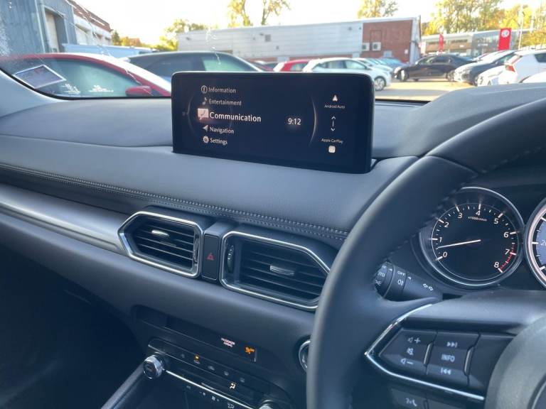 ..Driver Convenience,Adaptive Cruise Control,Blind Spot Monitoring with Rear Cross Traffic Alert,Front Parking Sensors,Multimedia Commander,Rear Parking Sensors,Service Indicator,Trip Computer,Tyre Pressure Monitoring SystemEntertainment,10.25in TFT Colour Centre Display with Mazda Connect Infotainment,12V Electrical Power Outlet,Apple CarPlay and Android Auto,Connected Services,Digital Radio,High Meter TFT Display,Integrated Bluetooth System,Integrated Mazda Navigation System with 5-Years Free European Map Updates,Luggage Compartment - Power Outlet,OEM Sound System,Shark Fin Antenna,USB Connection - 2x Front and 2x Rear InputsExterior,17in Alloy Wheels - Silver,B-Pillar and C-Pillar Garnish - Satin Black,Body Coloured Door Mirrors,Bumpers - Front and Rear Body Coloured with Black Lower Bumper Mouldings,Dual Tailpipe - Chrome Tip,Electric Windows - Front and Rear,Emergency Tyre Repair Kit,Gloss Black Finish Grille,Heated Auto Power-Folding Door Mirrors,Privacy Glass - Rear and Rear Side Windows,Rear Roof Spoiler - Body Coloured,Side Mouldings - Satin Black,Signature Wing - Bright FinishInterior,Auto Dimming Rear View Mirror,Dashboard Panel - Gunmetal Inlay,Door Panel Trim - Cloth with Gunmetal Inlay,Door Pockets - Driver and Front Passenger,Dual Zone Climate-Controlled Air-Conditioning with Rear Air Vents,Engine Start-Stop Button,Flat Fit Cargo Board,Front Centre Storage with Two Cupholders,Gear Shift - Leather-Wrapped,Glovebox with Interior Illumination,Grab Handles - Front Passenger and Two Rear with Coat Hooks,Interior LED Lighting,Karakuri Tonneau Cover,Luggage Compartment - Light,Rain-Sensing Front Wipers with Adjustable Sensitivity and Speed,Rear Seats - Manual Recline Adjustment,Roof Headlining - Light - Ceiling and Pillars,Roof Mounted Sunglasses Holder,Seat - 40-20-40 Karakuri Fold Flat Rear,Seatback Pocket - Driver and Front Passenger,Seats - Drivers Manual Lumbar Adjustment,Seats - Drivers Manual Slide-Recline and Height Adjustment,Seats - Front Passengers Manual Slide-Recline and Height Adjustment,Seats Rear - Folding Centre Armrest Equipped with USB Input,Steering Wheel - Leather Wrapped,Steering Wheel - Mounted Audio and Bluetooth Controls,Steering Wheel - Tilt and Height Adjustment,Sunvisors - Drivers and Front Passengers with Covered Vanity Mirror and Drivers Ticket Holder,Three Height Adjustable Head RestraintsEntertainment,10.25in TFT Colour Centre Display with Mazda Connect Infotainment,12V Electrical Power Outlet,Apple CarPlay and