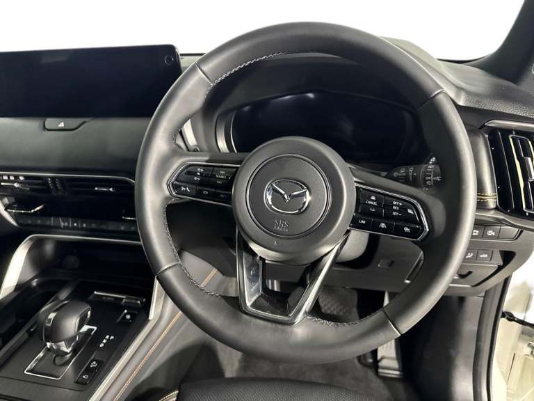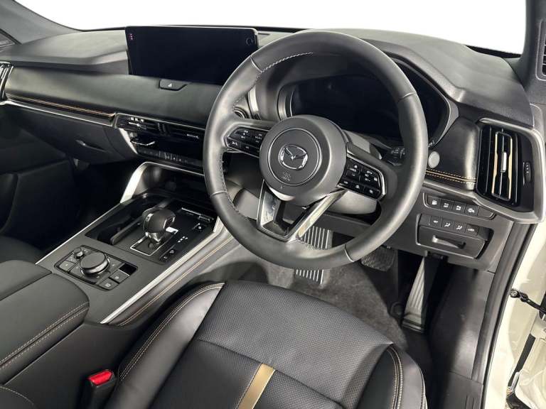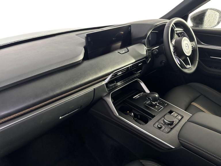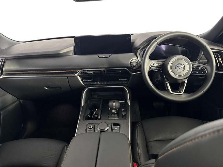 ..Emergency lane keeping with blind spot assist, Low washer fluid warning light, 12.3'' Colour entertainment centre display with mazda connect infotainment, 12.3'' TFT Colour display, Adjustable speed limiter, Blind spot assist, Blind spot monitoring with rear cross traffic alert, Distance alert system, Driver attention alert system, Driver Monitoring with personal identification, E-call with GPS, Emergency stop signalling system, Exit warning function, Front and rear parking sensors, Ingress / Egress support and automatic driver position guide, Integrated bluetooth, Intelligent speed assist, Kinematic posture control, Lane keep assist system (LAS) with Lane departure warning system (LDWS), Mazda Driver Personalisation System, Mazda hybrid navigation system with european mapping, Multimedia Commander, PAS, Power lift gate with handsfree function, Power start/stop button, Speed alert, Traffic sign recognition enhanced with mandated excessive speed warning, Trip computer, Windscreen projected colour active driving display, Wireless apple car play/android Auto, Type 2 Mode 2 cable for AC charging via UK 3-pin plug, 7.2 kw On board Charger, Mi-Drive (Normal, Sport, Off-road, Towing and EV mode), Type 2 Mode 3 cable for AC charging via home or public charge points, AM/FM and DAB radio, Bose surround sound system with 12 Speaker, Bose center point, Bass match and audio pilot technology, Steering wheel mounted audio/bluetooth controls, USB-C inputs (x2 front and x2 rear), Auto dimming driver's door mirror, Automatic headlight levelling, B-pillar and C-pillar garnishes in gloss black finish, Body colour roof spoiler, Body coloured bumpers, Body coloured lower bumper, wheel arch and side mouldings, Coming/leaving home lighting function, Dark plated headlight lense, Dark plating finish signature wing in front grille, Dark plating front side garnish, Differentiated front bumper design to accentuate the intake, Dusk sensing headlights, Electric front/rear windows with one touch auto up/down, Electric panoramic sunroof, Electrically adjustable, heated auto power folding door mirrors with memory, Frameless auto dimming interior rear view mirror, Front kodo turn signal, Front wiper de-icer, Gloss black door mirrors, Headlight washers, High beam control, Honeycomb radiator grille in piano black, LED 3rd brake light, LED rear signature combination lamps, Rain sensing front wipers with adjustable sensitivity and speed, Rear side wing doors, Rear wiper, Roof pillars and