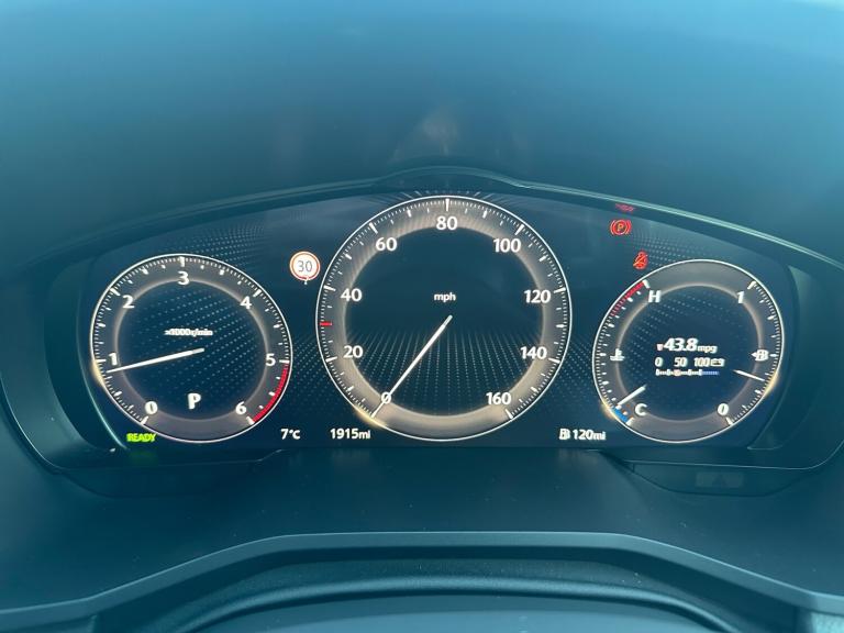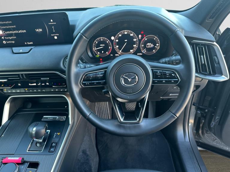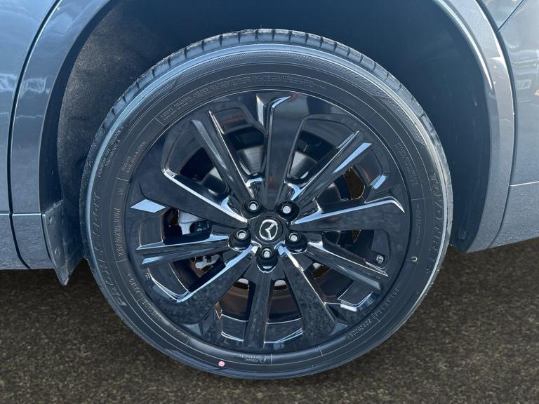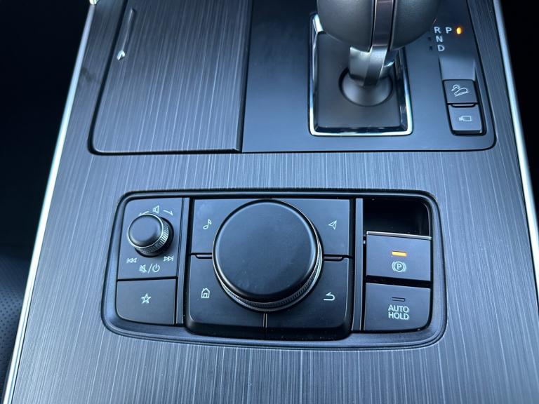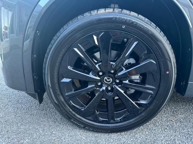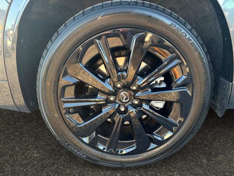 ..Emergency lane keeping with blind spot assist, Low washer fluid warning light, 12.3'' Colour entertainment centre display with mazda connect infotainment, 12.3'' TFT Colour display, Adjustable speed limiter, Blind spot assist, Blind spot monitoring with rear cross traffic alert, Distance alert system, Driver attention alert system, Driver Monitoring with personal identification, E-call with GPS, Emergency stop signalling system, Exit warning function, Front and rear parking sensors, Ingress / Egress support and automatic driver position guide, Integrated bluetooth, Intelligent speed assist, Kinematic posture control, Lane keep assist system (LAS) with Lane departure warning system (LDWS), Mazda Driver Personalisation System, Mazda hybrid navigation system with european mapping, Multimedia Commander, PAS, Power lift gate with handsfree function, Power start/stop button, Speed alert, Traffic sign recognition enhanced with mandated excessive speed warning, Trip computer, Windscreen projected colour active driving display, Wireless apple car play/android Auto, Internal Combustion Engine Sound Emulator, Mi-Drive (Normal, Sport, Off-road, Towing and EV mode), Paddle shift, AM/FM and DAB radio, Bose surround sound system with 12 Speaker, Bose center point, Bass match and audio pilot technology, Steering wheel mounted audio/bluetooth controls, USB-C inputs (x2 front and x2 rear), Auto dimming driver's door mirror, Automatic headlight levelling, B-pillar and C-pillar garnishes in gloss black finish, Body colour roof spoiler, Body coloured bumpers, Body coloured lower bumper, wheel arch and side mouldings, Coming/leaving home lighting function, Dark plated headlight lense, Dark plating finish signature wing in front grille, Dark plating front side garnish, Differentiated front bumper design to accentuate the intake, Dusk sensing headlights, Electric front/rear windows with one touch auto up/down, Electric panoramic sunroof, Electrically adjustable, heated auto power folding door mirrors with memory, Frameless auto dimming interior rear view mirror, Front kodo turn signal, Front wiper de-icer, Gloss black door mirrors, Headlight washers, High beam control, Honeycomb radiator grille in piano black, LED 3rd brake light, LED rear signature combination lamps, Rain sensing front wipers with adjustable sensitivity and speed, Rear side wing doors, Rear wiper, Roof pillars and roof lining finished in lighter colour to soften the overall look, Signature LED daytime running