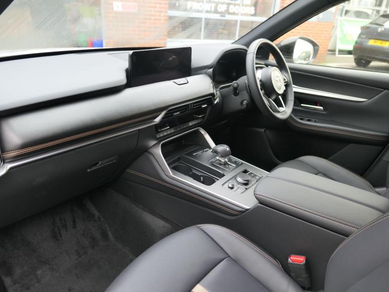 This 2025 Mazda CX-80 e-SKYACTIV Homura presents an exceptional opportunity with an incredibly low mileage of just 50 miles, making it virtually new. This Four Wheel Drive, 7 seat SUV is powered by a 2.5L Petrol Plug-in Hybrid engine and meets Euro 6 emission standards. It boasts a substantial towing weight of 2500 kg and features a premium branded sound system with a 12 speaker Bose Surround Sound setup. Comfort is enhanced by heated front seats with 3 stage settings and a heated steering wheel, while the Smart Keyless Entry adds convenience. Parking is made easier with front and rear parking sensors, and the vehicle has had only one owner.The generous boot space ensures you have ample room for all your luggage or shopping needs, highlighting its practicality for families and adventurers alike. The combination of its advanced e-SKYACTIV plug in hybrid technology, sophisticated Homura trim, and the comprehensive suite of premium features like the Bose sound system and heated seating, positions this CX-80 as a superior choice compared to other vehicles in its class. Its four wheel drive capability further enhances its versatility, offering confidence in various driving conditions.