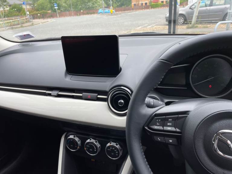 ..Driver Convenience,Analogue Speedometer,Cruise Control with Manual Speed Adjustment and Adjustable Speed Limiter,Lane Departure Warning System,Multimedia Commander including Separate Volume Dial,Rear Parking Sensors,Service Indicator,Trip Computer,Tyre Pressure Monitoring SystemEntertainment,8in Colour Touch-Screen Centre Display,AM-FM-DAB Radio - Audio System with 6 Speakers,AUX Input,Integrated Bluetooth System,Mazda Navigation System - European Mapping with Alternative Route Calculations - Point of Interest Search and 3-Years Free Map Updates,Mobile Phone App Interface,OEM Sound System,USB-A Input x2,Wireless Apple CarPlay and Wired Android AutoExterior,15in Alloy Wheels - Silver Metalic,Bumper - Front Body Coloured with Black Lower Bezel,Bumper - Rear Body Coloured with Black Lower Moulding with Yellow Accent,Door Mirrors - Electrically Adjustable-Heated-Folding-Body Coloured,Electric Windows - Front and Rear with One Touch Auto Up and Down on Drivers Side,Grille - Jet Black with Yellow Accent,Signature Wing - Gloss Black Finish,Tyre Repair KitInterior,Air Conditioning - Climate Control,Air Vents - Black and White Accents,Auto Dimming Rear View Mirror,Courtesy Light with Integrated Spotlight,Dashboard Panel - White - Black - Mint Gloss,Door Pockets - Driver and Front Passenger,Engine Start-Stop Button,Front Centre Storage with Two Cupholders,Front Head Restraints,Glovebox,Grab Handles - Front Passenger and Two Rear with Coat Hooks,Keyless Go,Leather-Wrapped Gear Shift,Leather-Wrapped Handbrake Lever,Leather-Wrapped Steering Wheel,Luggage Compartment - Light,Rain-Sensing Front Wipers,Seatback Pocket - Front Passenger,Seats - 60-40 Split Folding Rear,Seats - Drivers and Passenger - Manual Slide-Recline and Height Adjustment,Steering Wheel - Telescopic and Tilt Adjust,Steering Wheel Mounted Audio and Bluetooth Controls,Sunvisors - Drivers and Front Passengers with Covered Vanity Mirror and Drivers Ticket Holder,Three Height Adjustable Rear Head RestraintsEntertainment,8in Colour Touch-Screen Centre Display,AM-FM-DAB Radio - Audio System with 6 Speakers,AUX Input,Integrated Bluetooth System,Mazda Navigation System - European Mapping with Alternative Route Calculations - Point of Interest Search and 3-Years Free Map Updates,Mobile Phone App Interface,OEM Sound System,USB-A Input x2,Wireless Apple CarPlay and Wired Android Auto