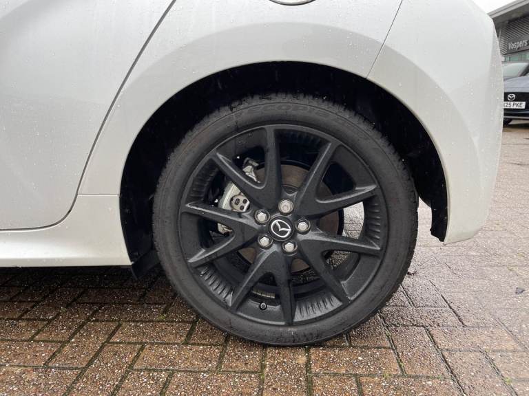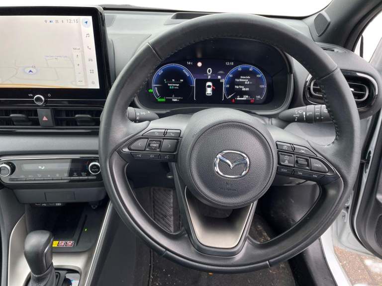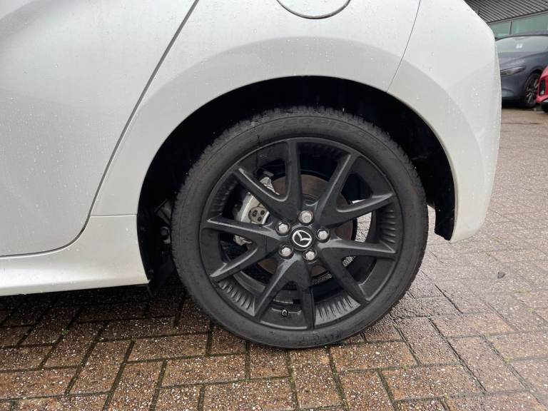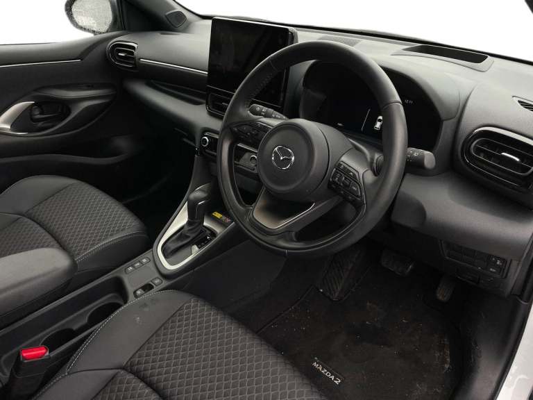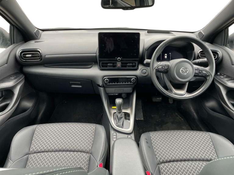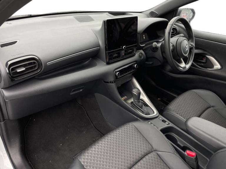 ..12.3'' Digital instrument cluster with speedometer and hybrid system indicator, Adjustable speed limiter, Drive mode selector (Eco, Normal and Power), Driver attention alert system, Dynamic radar cruise control, E-call with GPS, EV drive mode, Front and rear parking sensors, Integrated bluetooth, Lane tracing assist includes Lane centering, Lane departure alert, Steering assist and Vehicle sway warning, Multi-information display, PAS, Push button start and stop, Qi wireless charging, Rear cross traffic alert with auto braking, Reversing camera, Road sign assist - RSA, Satellite navigation system, Service indicator, Tailgate, Trip computer, Voice recognition, Windscreen projected head up display, Wireless Apple CarPlay and wired Android Auto, i-stop, 6 speaker audio system and 10.5'' colour screen centre display, DAB Digital radio, Steering wheel mounted audio/bluetooth controls, USB type C port, Auto dimming rear view mirror, Auto folding door mirrors, Automatic high beam - AHB, Body coloured front bumper, Body coloured rear bumper with gloss black lower mouldings, Coming home function, Dusk sensing headlights, Front and rear electric windows, Gloss black electric adjustable/heated door mirrors, Gloss black front grille, Gloss black rear roof spoiler, Hybrid badge, LED front fog lights, LED headlights with manual headlight levelling and LED daytime running lights, LED rear combination light with LED turn signals, LED third brake light, Mazda unique tailgate garnish, Panoramic roof, Piano black lower window garnish, Privacy glass in rear side and rear windows, Rain sensing front wipers with adjustable sensitivity and speed, Rear side wing doors, Rear wash wiper, Shark fin antenna, Welcome lighting, 12V power outlet, 3 seat bench in 2nd row, 60/40 split fold down rear seats, Ambient lighting, Black roof lining in pillar and ceiling, Cloth/Synthetic leather upholstery, Driver, front passenger and two rear door storage, Driver, Front passenger and two rear grab handles with coathooks, Drivers seat manual slide recline and height adjustment, Drivers/front passengers with covered vanity mirrors, Dual zone climate control, Front centre armrest with console storage, Front head restraints, Front passenger seat manual slide, recline and height adjust, Front sport seats, Glovebox, Interior courtesy light with LED illumination, ISOFIX child seat anchorage points attached on outer rear seats, Leather handbrake, Leather wrapped gearshift, Leather wrapped steering