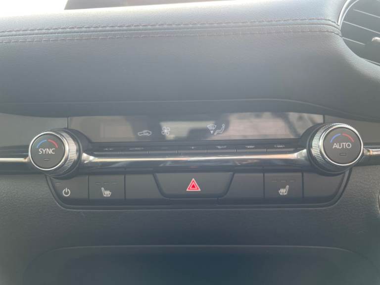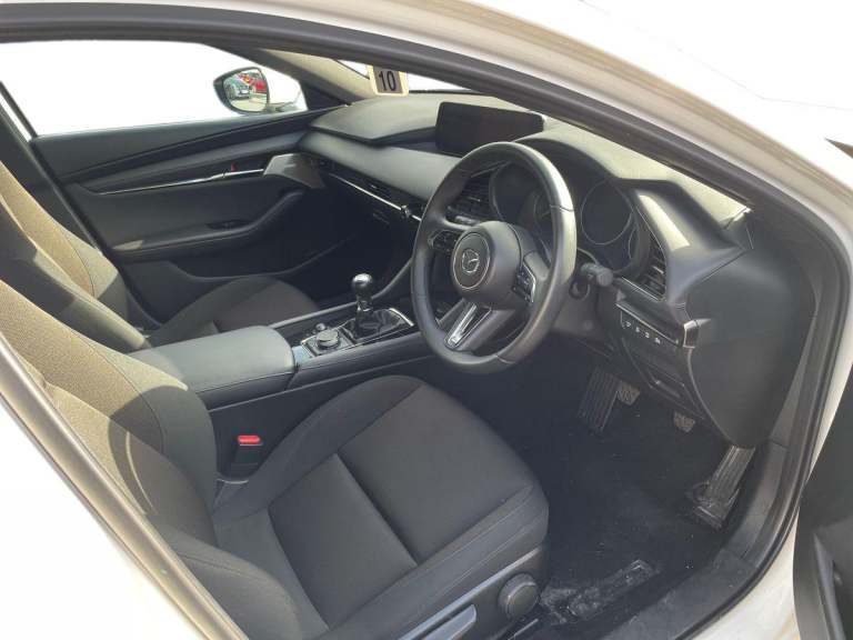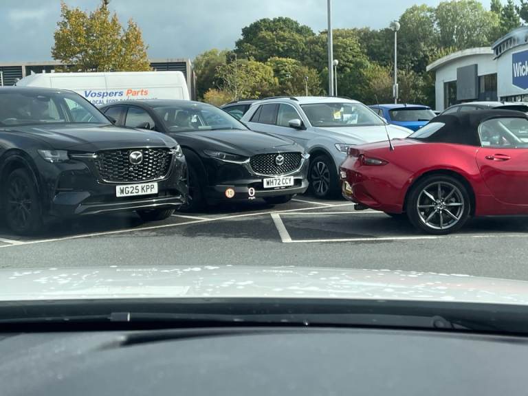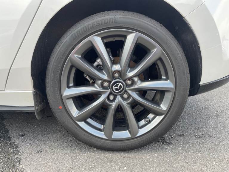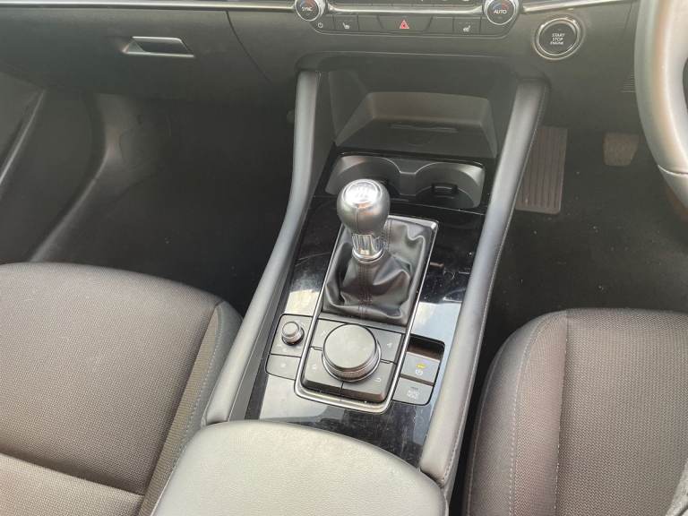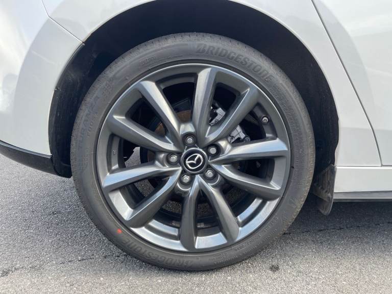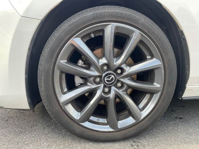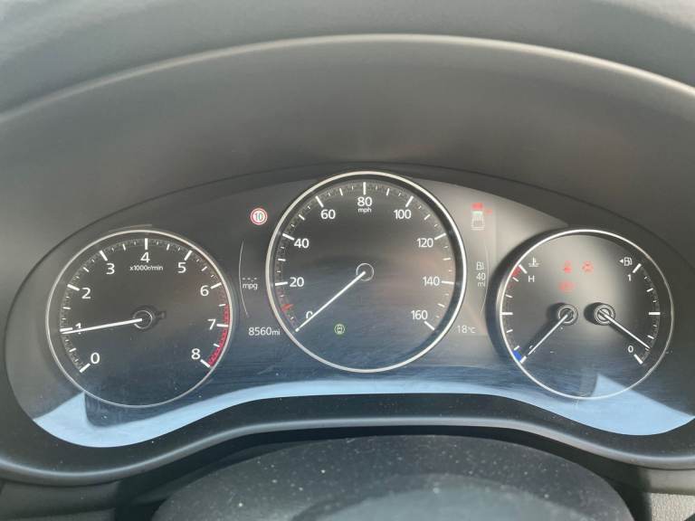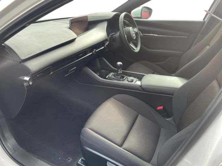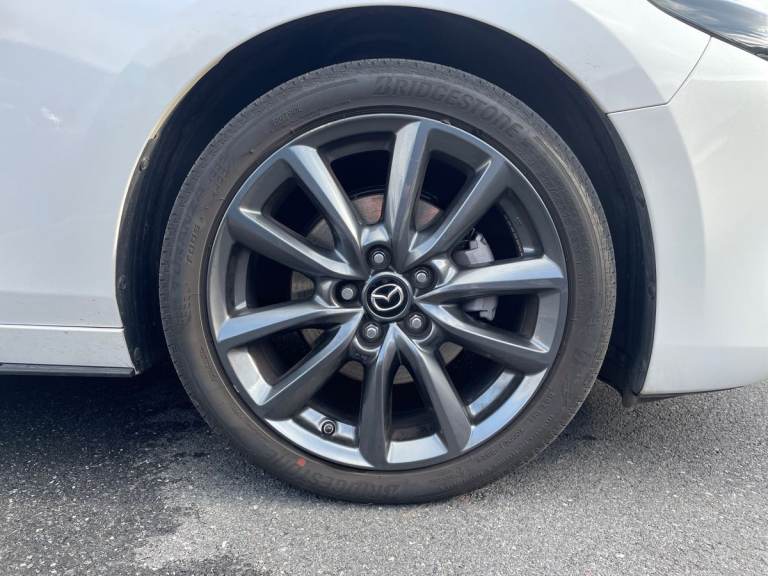 ..10.25'' display with Mazda Connect infotainment, 7'' colour TFT display, Adjustable speed limiter, Advanced E-call with GPS, Alexa in-car voice assistant, Audio transfer from bluetooth devices, Blind spot monitoring with rear cross traffic alert, Car finder, Colour active driving display inc Windscreen projected,Traffic Sign Recognition, turn-by- turn navigation and Mazda Radar Cruise Control information, Digital instrument cluster, Driver attention alert system, Emergency stop signalling system, Engine start/stop button, Front and rear parking sensor with audible and visual warning, Head up Display, Integrated bluetooth with steering wheel mounted controls, Intelligent speed assist, Lane keep assist system (LAS) with Lane departure warning system (LDWS), Mazda connected services, Mazda Navigation System with european mapping, Mazda Radar Cruise Control, Mobile App interface, Multimedia Commander, PAS, Qi wireless charging, Reversing camera, Service indicator, Tailgate, Traffic sign recognition (TSR), Trip computer, Wireless Apple CarPlay/Android Auto, Cylinder Deactivation, i-stop, 2 USB-C ports in the front, Mazda Multimedia System with AM / FM / DAB radio with 12 Speaker Bose sound system, bose centerpoint, bassmatch+audiopilot technology, Adaptive LED Headlights, Auto dimming driver's door mirrors, B-pillar garnish in piano black, Body coloured door mirrors, Coming/leaving home lighting function, Dark metallic finish signature wing, Dual chrome tailpipes tip, Dusk sensing headlights, Electric front/rear windows with one touch/auto up/down, Electrically adjustable, heated auto power folding door mirrors, Frameless auto dimming interior rear view mirror, Front body coloured bumper with black lower bezel, Front kodo turn signal, Gloss black finish front grille, Gloss black rear roof spoiler, LED auto headlight levelling, LED indicator lights, LED third brake light, Privacy glass with dark tinting on rear side windows and rear window, Rain sensing front wipers with adjustable sensitivity and speed, Rear colour coded bumper with gloss black lower moulding, Rear fog lights, Rear side wing doors, Signature LED daytime running lights, Signature LED rear combination lights, Speed adjustable rear wash wiper with intermittent wipe, 12v electrical power outlet, 3 seat bench in 2nd row, 60/40 split fold down rear seats, Chrome interior trim accents with steering wheel centre bezel, surround of engine start / stop button and glove box handle, Cloth upholstery,