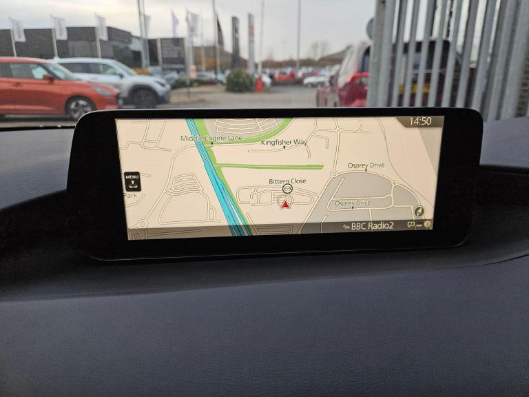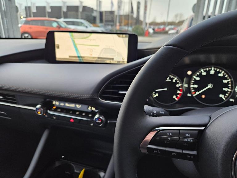 This 2025 Mazda3 e-SKYACTIV-G Exclusive-Line presents a superb ownership proposition, having had only one owner since new. This stylish Mazda3, powered by a responsive 2.5L petrol engine and meeting Euro 6 emissions standards, offers a refined driving experience. Inside, you'll find integrated Bluetooth for seamless connectivity, and the convenience of Apple CarPlay and Android Auto to keep your digital life accessible on the go. Navigating tight spots is made easier with a reversing camera and front and rear parking sensors, while LED headlights with auto levelling ensure excellent visibility in all conditions.The Mazda3 Exclusive-Line is designed for practicality and performance. Its impressive 0-62mph acceleration in just 9.5 seconds demonstrates its capable performance, while the generous boot space ensures you have ample room for luggage or shopping. These features, combined with its single owner history and advanced technology, position this Mazda3 as a superior choice for those seeking a well maintained and feature rich compact car.