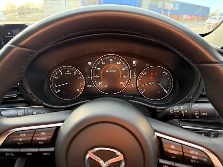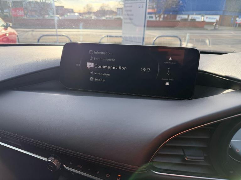 This 2025 Mazda3 e-SKYACTIV-G Centre-Line is a superb example, having had only one owner from new. This stylish hatchback features a responsive 2.5L petrol engine, meeting Euro 6 emissions standards. Inside, you'll find the convenience of Apple CarPlay and Android Auto, allowing seamless integration with your smartphone. The advanced LED headlights with auto levelling ensure optimal visibility, while the QI wireless mobile phone charging keeps your devices powered up without fuss. Maneuvering is made easy with a reversing camera and front and rear parking sensors, all contributing to a stress free driving experience.The Mazda3 e-SKYACTIV-G Centre-Line offers a compelling package, demonstrating its superiority over similar vehicles with its impressive acceleration, reaching 0-62mph in just 9.5 seconds. Furthermore, its low insurance group rating makes it an economical choice for many drivers. You'll also appreciate the generous boot space, providing ample room for shopping or luggage. This well maintained vehicle combines practicality with Mazda's renowned driving dynamics, making it an excellent option for those seeking a refined and capable hatchback.