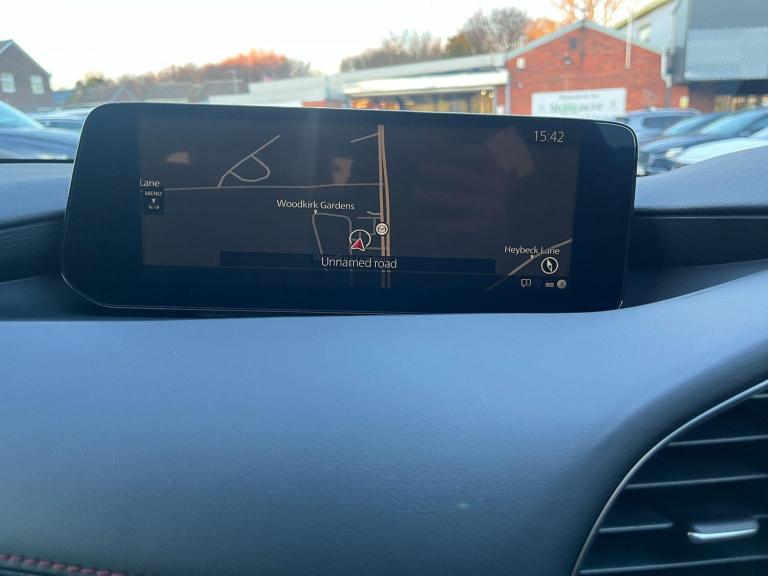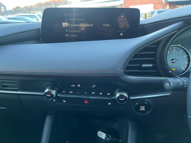 This 2025 Mazda3 e-SKYACTIV-G Homura presents an exceptional opportunity with an incredibly low mileage of just 10 miles, making it virtually new. It has been fitted with a full Mazda Bodykit and spoiler, this Euro 6 compliant Mazda3 boasts a responsive 2.5L petrol engine and comes in the distinguished Homura trim. Inside, you'll find comfort and convenience with Dual-Zone Climate Control Air Conditioning and the ease of Mazda Radar Cruise Control. Stay connected and entertained with Apple CarPlay and Android Auto integration, and keep your devices powered up with QI Wireless Mobile Phone Charging. Navigating tight spaces is made simple thanks to front and rear parking sensors.The Mazda3 e-SKYACTIV-G Homura offers a compelling package that sets it apart. Its impressive acceleration, reaching 0-62mph in just 9.5 seconds, provides an engaging driving experience. Furthermore, its classification within a low insurance group suggests more affordable ownership compared to similar vehicles. Practicality is also a strong suit, with ample large boot space catering to your storage needs. This combination of performance, efficiency, and thoughtful features makes this Mazda3 a standout choice.