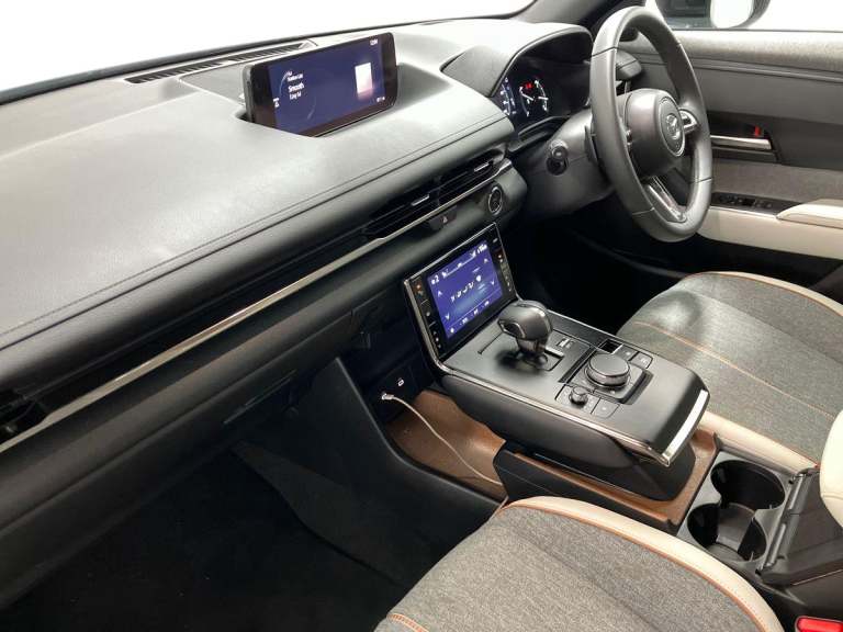 This 2025 Mazda MX-30 Exclusive-Line offers the best of both worlds with its great around town electric range and efficient petrol engine for the motorway. This petrol plug in hybrid model, featuring a 0.8L engine, combines efficient driving with a host of advanced features. Youll appreciate the convenience of Smart Keyless Entry and the integrated Bluetooth system for seamless connectivity on the go. Safety is enhanced with Blind Spot Monitoring, including Rear Cross Traffic Alert and Blind Spot Assistance, while the Reversing Camera provides clear visibility for easier parking. The Exclusive-Line trim ensures a refined driving experience, highlighting how this Mazda MX-30 stands out from other vehicles. The inclusion of these sophisticated driver aids and connectivity options demonstrates a commitment to both comfort and security. This particular model is well prepared for the road ahead, offering a compelling package for any discerning driver.
