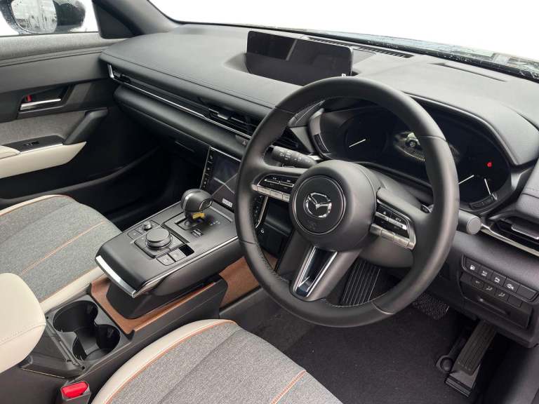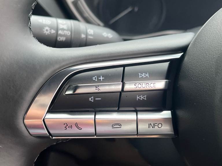 ..Driver Convenience,Adaptive Cruise Control,Blind Spot Monitoring with Rear Cross Traffic Alert,Digital Instrument Cluster,Drive Mode Switch,Driver Attention Alert - DAA,Head-Up Display,Multimedia Commander,Parking Aids - Reversing Camera,Parking Sensors - Front and Rear with Audible and Visual Warning,Service Indicator,Traffic Sign Recognition,Trip Computer,Tyre Pressure Monitoring SystemEntertainment,10.25 Colour TFT Centre Display,12V Electrical Power Outlet,2x USB-C Input,DC Socket for Rapid Charging up to 40KW,e-Call with GPS,FM - DAB Radio with 8 Speakers,Integrated Bluetooth,Mazda Connected Services,Mazda Hybrid Navigation System,Wireless Apple CarPlay and Wired Android AutoExterior,18in Alloy Wheels - Black - Diamond Cut,B-Pillar and C-Pillar Garnish - Gloss Black,D-Pillar Garnish - Satin Plated,Door Mirrors - Gloss Black - Electrically-Adjustable - Heated - Auto Power Folding,Electric Windows - Front,Emergency Tyre Repair Kit,Front Grille - Black Finish,Kodo Turn Signal,Lower Bumper Wheel Arch and Side Mouldings - Satin Black,Privacy Glass - Rear Sides and Rear Window,Rear Roof Spoiler - Gloss BlackInterior,Air Conditioning,Bright Finish Interior Trim Accents - Steering Wheel Centre Bezel - Surround Start-Stop and Glove Box Handle,Colour 7inch TFT Display,Door Panel Trim - Cloth with Artificial Leather Armrest and Cork Inserts Around Inner Door Handle,Drivers Seat Power Slide - Recline - Height - Tilt and Lumbar Adjustment with Head-up Display and Driver Door Memory,Frameless Auto Dimming Rear-View Mirror,Front and Rear with LED Lighting,Front Armrest,Front Head Restraints,Front Passenger Seat - Manual Slide - Recline - Height Adjustment,Gear Shift - Leather-Wrapped,Glovebox with Interior Illumination,Grab Handles - Driver - Front Passenger and Two Rear with Coat Hooks,Interior Cork Accents - Mazda Heritage Cork on the Console Tray and Front Cupholder Lids,Luggage Compartment - LED Illumination,Power Start-Stop Button,Rain-Sensing Front Wipers,Rear Seats - 60-40 Split Fold Down,Rear Seats - Folding Centre Armrest Equipped with Two Cup Holders,Roof Lining - Ceiling and Pillars - Black,Roof Mounted Sunglasses Holder,Seatback Pocket - Located on Rear of Front Passenger Seat,Seats - Front Heated,Steering Wheel - Leather Wrapped,Steering Wheel - Tilt and Telescopic Adjustment,Steering Wheel Mounted Audio and Bluetooth Controls,Storage Spaces - Door Pockets,Storage Spaces - Front Centre Storage with Two Cupholders,Sunvisors - Drivers and Front