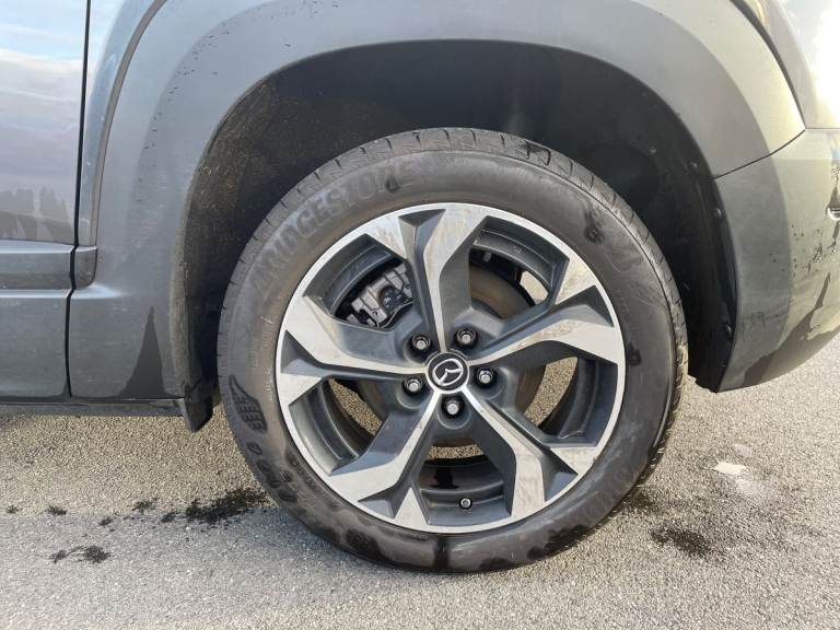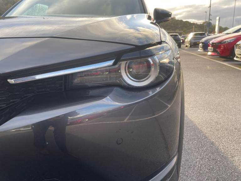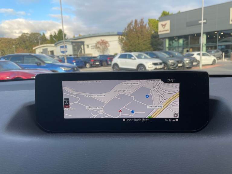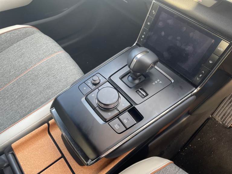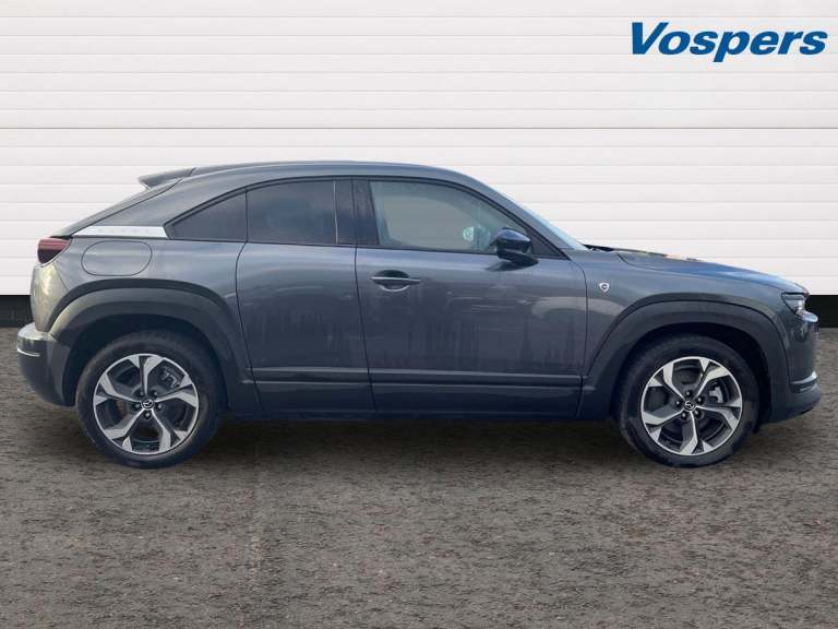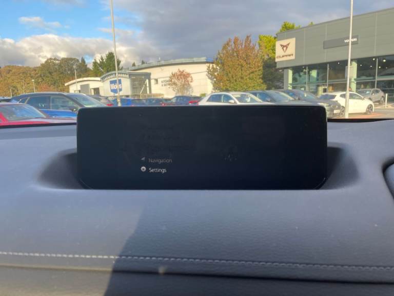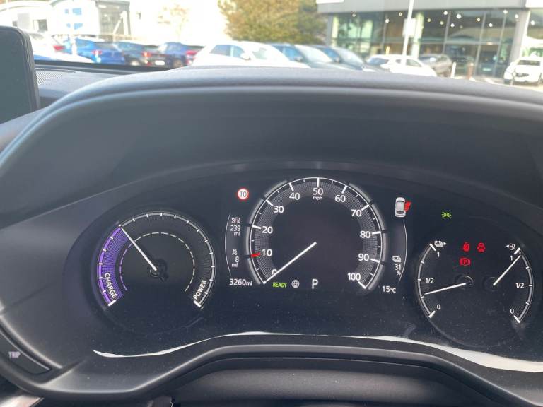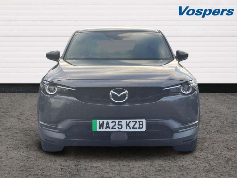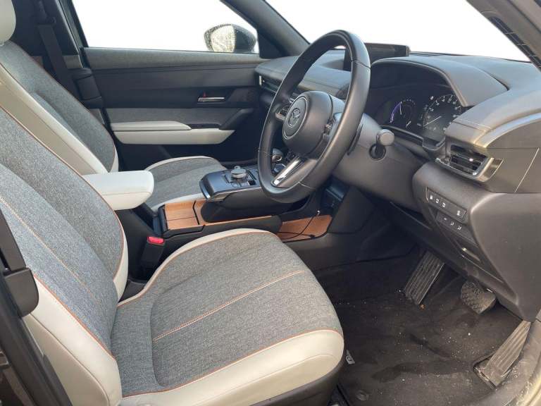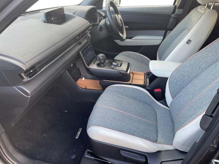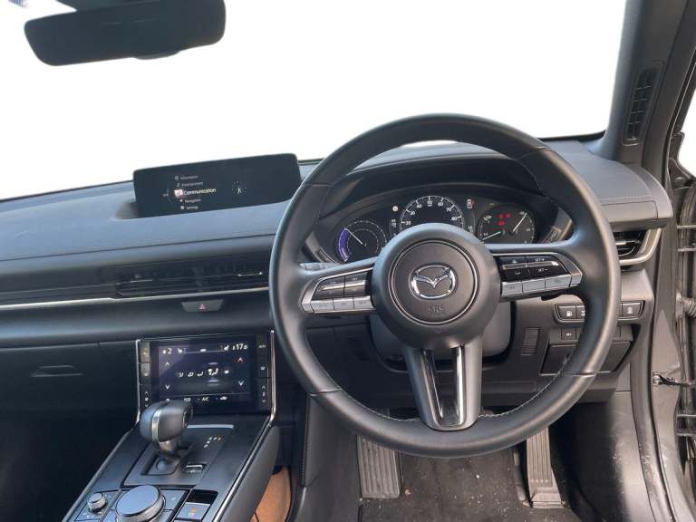 ..7'' TFT Colour driver instrument panel display, 8.8'' Colour centre touch screen display with Mazda Connect infotainment, Adaptive cruise control (Mazda radar cruise control) features stop and go, Apple car play/Android Auto, Blind spot monitoring with rear cross traffic alert, Driver attention alert system, E-call with GPS, Emergency lane keeping with blind spot assist and road keep assist, Emergency stop signalling system, Front and rear parking sensors, Integrated bluetooth, Integrated Mazda navigation system, Intelligent speed assist, Lane keep assist system (LAS) with Lane departure warning system (LDWS), PAS, Power start/stop button, Reversing camera, Service indicator, Trip computer, Windscreen projected colour active driving display (head up display) with traffic sign recognition, 11 kW triphase onboard charger, DC socket for rapid charging up to 40KW, Internal Combustion Engine Sound Emulator, Type 2 for mode 2 AC charging via 3-point plug, Type 2 for mode 3 AC charging via home or public charge points, 8 Speakers, DAB Digital radio, FM, Multimedia Commander including separate volume dial, Steering wheel mounted audio/bluetooth controls, Auto dimming driver's door mirror, Auto headlight levelling, B-pillar and C-pillar garnishes in piano black finish, Black door mirrors, Black front grille, Body coloured bumpers, Coming/leaving home lights, Door mirrors with adjustable memory and tilt down function when in reverse, Dusk sensing headlights, Electric front windows with one touch auto up/down, Electrically adjustable door mirrors, Frameless auto dimming interior rear view mirror, Front, rain-sensing wipers with adjustable sensitivity and speed, Gloss black rear roof spoiler, Heated and auto power-folding door mirrors in black with integrated indicator lights, High beam control, LED 3rd brake light, LED daytime running lights, LED Headlights, LED rear combination lights, Piano Black window trim, Privacy glass (rear side windows and rear screen), Rear side wing doors, Rear wiper, Satin Trim on D Pillar, Unique R-EV exterior badging, 12v electrical power outlet, 3 seat bench in 2nd row, 60/40 split fold down rear seats, 8-way power adjustable driver seat with memory linked to door mirror and Active Driving Display, Chrome interior trim accents with steering wheel centre bezel, surround of engine start / stop button and glove box handle, Chrome power button surround, Climate control air conditioning operated by the central 7'' touchscreen control