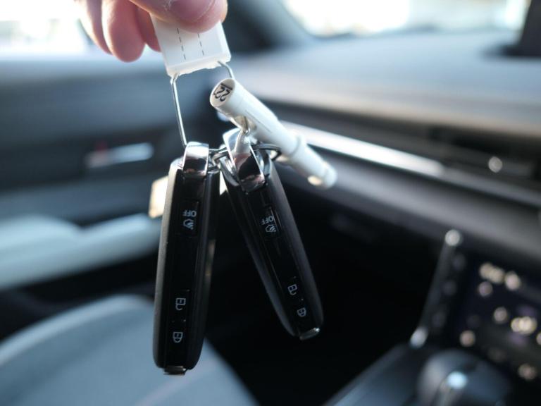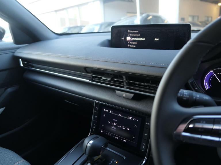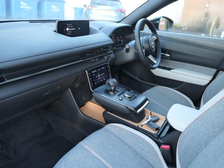 This 2025 Mazda MX-30 Exclusive-Line petrol plug in hybrid presents an exceptional find with an incredibly low mileage of just 50 miles, having had only one owner from new. This nearly new example combines the practicality of a plug in hybrid powertrain with the stylish design and engaging driving experience that Mazda is known for. The Exclusive Line trim level ensures a well equipped interior, featuring a convenient Head Up Display to keep your eyes on the road, and dusk sensing lights that automatically illuminate when needed. Comfort is also a priority, with heated front seats for those cooler journeys, and smart keyless entry for effortless access.Further enhancing your driving experience, this MX-30 seamlessly integrates with your digital life through Apple CarPlay and Android Auto, allowing for easy access to your favourite apps and navigation. These features, combined with the vehicle's exceptionally low mileage and single owner provenance, clearly set this Mazda apart from other similar models on the market. It represents a superb opportunity to acquire a modern, efficient, and feature rich vehicle that feels almost new.