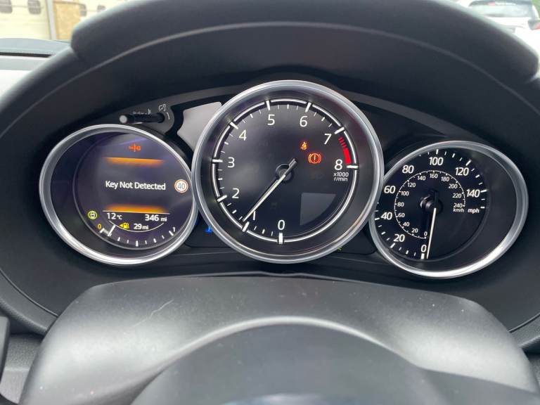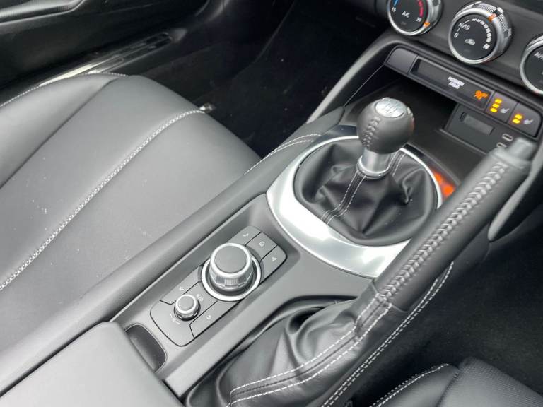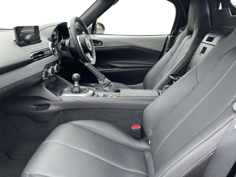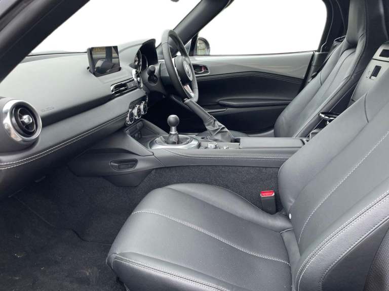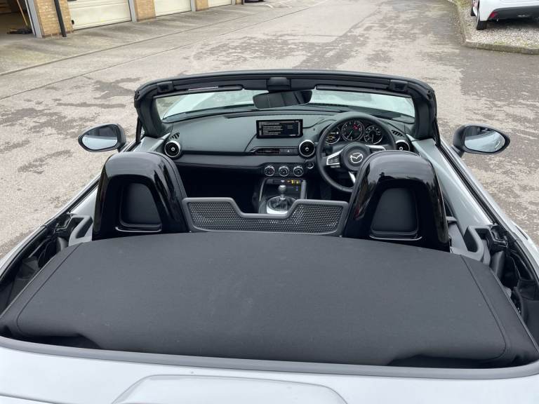 ..Driver Convenience,Blind Spot Monitoring with Rear Cross Traffic Alert,Cruise Control with Manual Speed Adjustment,Driver Attention Alert - DAA,Multimedia Commander,Rear Parking Sensors,Reversing Camera,Traffic Sign Recognition,Tyre Pressure Monitoring SystemEntertainment,8.8in TFT Colour Centre Display,AM-FM-DAB Radio,Integrated Bluetooth System,Mazda Navigation System - European Mapping with Alternative Route Calculations - Point of Interest Search and 7-Years Free Map Updates,USB Type-C Input x2,Wireless Apple CarPlay and Wired Android AutoExterior,17in Alloy Wheels - Machined Black Metallic,Black Premium Cloth Soft-top,Body Coloured Door Mirrors,Electric Windows - One Touch Auto Down,Emergency Tyre Repair Kit,Piano Black Fashion Bars,Scuff Plates - Black Plastic with Stainless Insert,Tailpipes - Twin,WindblockerInterior,3-Stage Seat Heaters,Air Conditioning - Climate Control,Air Vent Surrounds - Chrome,Centre Console - Trimmed in Vinyl Leather,Coinbox Located on Centre Console,Dashboard Panel - Black Vinyl Leather,Engine Start-Stop Button,Frameless Auto Dimming Rear View Mirror,Gear Shift - Leather-Wrapped,Interior Courtesy Light,Interior Upper Door Trim - Body Coloured Co-Ordinated,Kinematic Posture Control,Leather-Wrapped Handbrake Lever,Rain-Sensing Front Wipers with Adjustable Sensitivity and Speed,Seats - Drivers Manual Slide-Recline and Tilt Adjustment,Seats - Front Passenger Manual Slide and Recline Adjustment,Side Door Trim - Black Vinyl with Silver Stitching,Steering Wheel - Leather,Steering Wheel - Mounted Audio and Bluetooth Controls,Steering Wheel - Tilt and Telescopic Adjustment,Storage - Rear Centre Box with Lockable Lid,Sun Visors - Drivers and Front Passengers with Covered Vanity Mirror and Ticket Holder,Two Cupholders - DetachableEntertainment,8.8in TFT Colour Centre Display,AM-FM-DAB Radio,Integrated Bluetooth System,Mazda Navigation System - European Mapping with Alternative Route Calculations - Point of Interest Search and 7-Years Free Map Updates,USB Type-C Input x2,Wireless Apple CarPlay and Wired Android Auto