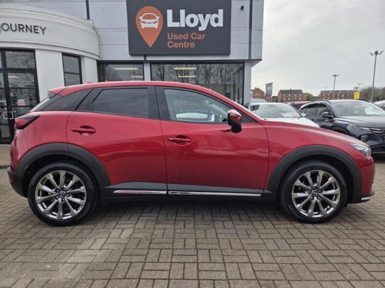 Conveniently located less than a mile from junction 44 off the M6 Lloyd Used Car Centre Carlisle are delighted to offer this MAZDA CX-3 2.0 Sport Nav PLUS 5dr finished in gleaming metallic red paintwork complimented with 18 inch alloy wheels and privacy glass. First registered on 26-10-2019 and comes complete with an up-to-date Service, MOT and our market leading 12-month nationwide warranty and breakdown ensuring complete peace of mind. This comes with a range of great features the interior is adorned with a part leather upholstery, and with heated seats and a heated steering wheel it makes those frosty mornings a pleasure. The touchscreen infotainment system comes with the Mazda built-in satellite navigation letting you get to your destination with ease, and with integrated phone connectivity it allows you to take your phone calls on the go and listen to your favourite music, this Mazda CX-3 comes with the Bose sound system making your music crystal clear. This family friendly Mazda comes with a reverse camera and parking sensors making parking in those narrow spaces effortless. Featuring cruise control and a heads up display for your speedometer it makes those long drives a relaxing and enjoyable experience. Lloyd Used Car Centre are extremely proud to offer what we believe are the very best quality and selection of used vehicles in the local area, our vehicles are carefully selected by our sales manager Richard who has over 30 experience in the motor industry giving him the insight to select the very best vehicles from our colleagues within the multi award winning family-owned Lloyd Motor Group, one of the UKs leading independent vehicle retailers.