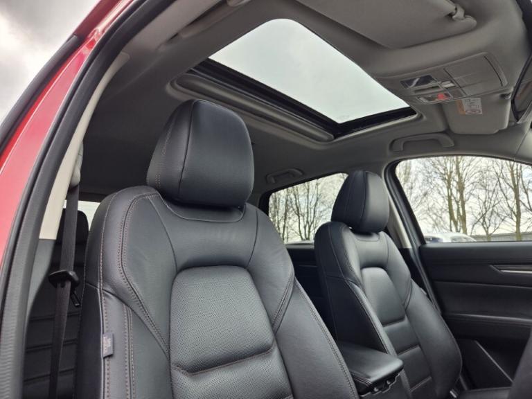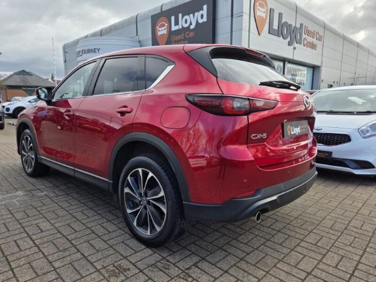 Conveniently located less than a mile from junction 44 off the M6 Lloyd Used Car Centre Carlisle are delighted to offer this MAZDA CX-5 2.0 e-Skyactiv G MHEV Exclusive-Line 5dr Auto with full service history, finished in gleaming metallic red paintwork complimented with 19 inch diamond cut alloy wheels and privacy glass. First registered on 31-10-2023 and comes complete with an up-to-date Service, MOT and our market leading 12-month nationwide warranty and breakdown ensuring complete peace of mind. This comes with a range of great features the interior is adorned with a black leather upholstery, with heated seats making those frosty mornings a pleasure. The touchscreen infotainment system with the Mazda integrated satellite navigation helping you to get to your destination with ease and also comes with apple car play and android auto allowing you to seamlessly mirror your mobile device giving you access to your favourite apps and letting you listen to your favourite playlists on Spotify, it also includes a wireless phone charger pad to keep your phone topped up on the go. This stylish Mazda CX-5 comes with a reverse camera and parking sensors making parking in those narrow spaces effortless. It features Adaptive cruise control making those long journeys an enjoyable and comfortable experience also features a head up display for your speedometer. Lloyd Used Car Centre are extremely proud to offer what we believe are the very best quality and selection of used vehicles in the local area, our vehicles are carefully selected by our sales manager Richard who has over 30 experience in the motor industry giving him the insight to select the very best vehicles from our colleagues within the multi award winning family-owned Lloyd Motor Group, one of the UKs leading independent vehicle retailers.