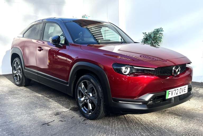 Mazda MX30 Sport Lux finished in Soul Red Crystal, just 26k miles, first registered November 2022, with full service history, AND SUPPLIED WITH 12MTHS WARRANTY! The MOT is until 3102026. The car features bluetooth, heads up display with traffic recognition, navigation, cruise control, blind spot monitoring, front and rear parking sensors with the additional benefit of reverse camera. The car is supplied with state of health report for the battery, grade A, 2 keys and book pack Finance quotations available, hire purchase and PCP, to discuss this further please call the team on 01902 456300. We would love to help you drive this Mazda MX30 home, call the team on 01902 456300, we will be happy to assist