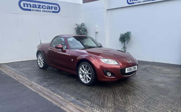 Mazda MX5 2.0 Sport Coupe, just 23k miles, finished in Copper Red with black leather, heated seats, bluetooth, cruise control, air conditioning, central locking, electric windows and door mirrors, ABS. This is a one owner car with full service history, details of the service history are available on the Mazcare website, dates and mileages. This car has been fully serviced in our own Mazda specialist workshop, had 2 new tyres fitted and is available for same day drive away. To arrange to view please call the team on 01902 456300