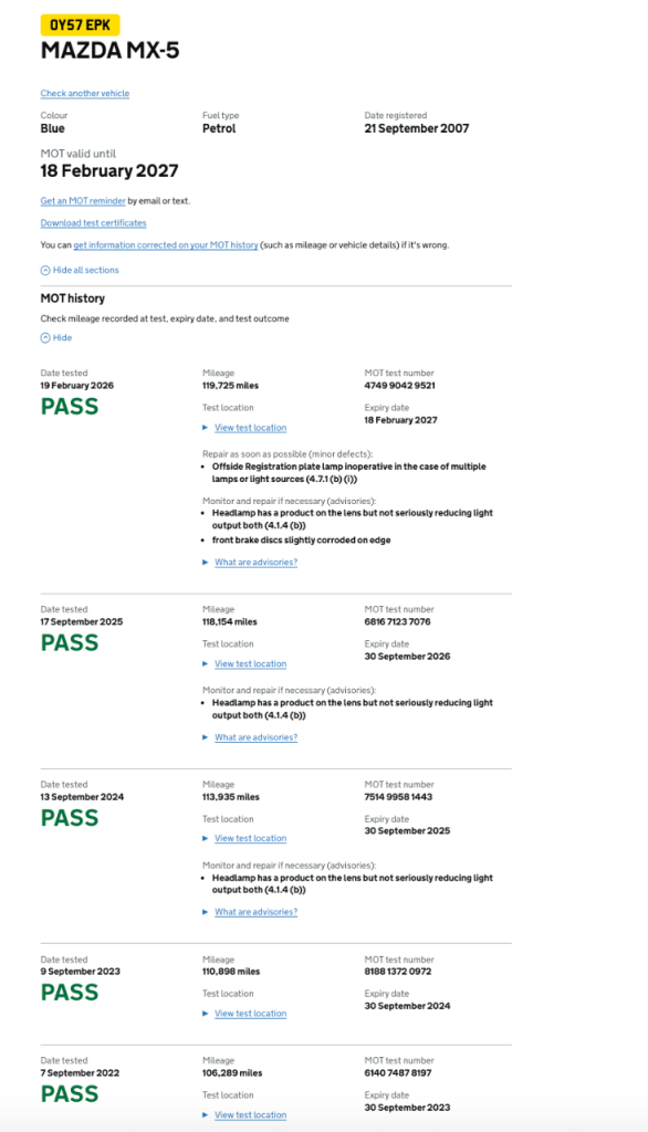 2007 Mazda MX-5 2.0L Sport, Electric Hard Top (PRHT) | ~120k miles | ULEZ Compliant