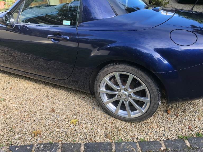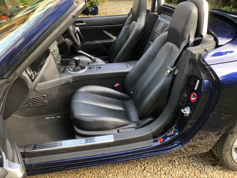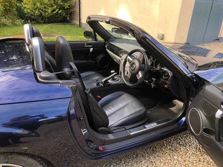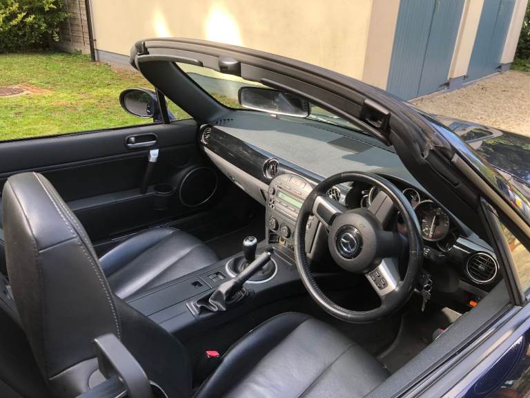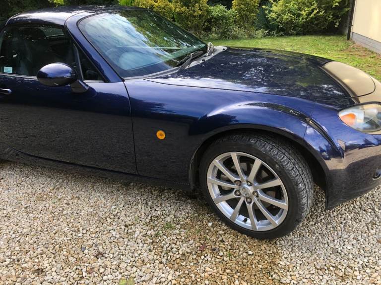 MX5 Roadster, one owner from new, Metallic Stormy Blue with black leather heated seats. service history available , Alloy wheels professionally refurbished. Electric retractable hard top.New MOT until 28/02/2027.