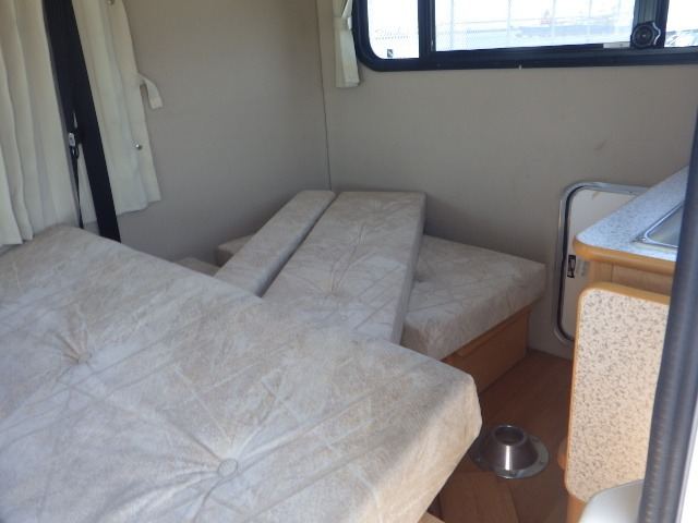 This motorhome is coach built , it is a Mazda Scrum with a Tent Mushi Conversion , It has a sink and tap with a motor , There is a portaable gas hob , A leisure battery and invertor fitted , Interior rear lights and sockets , Foldaway double bed , rear curtains .