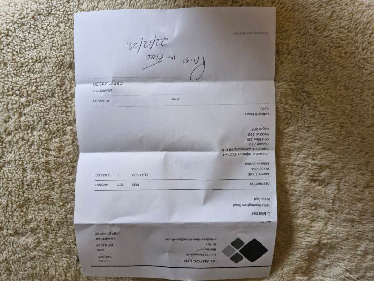 Mazda Mazda5 Venture (2013) 1.6d Venture MPV 5dr Diesel Manual Euro 5 (115 ps). Red metallic with ISO-POR easy clean interior, 17in Alloy Wheels - Bright Finish, Air Conditioning - Climate Control, Cruise Control, DSC - Dynamic Stability Control, Door Mirrors - Jet Black Mica Housings, Door Mirrors - Power Folding, Dusk Sensing Automatic Headlights, EBD - Electronic Brakeforce Distribution, Electrically Adjustable-Heated Door Mirrors, Front Fog Lights, Integrated Bluetooth System, Privacy Glass - Rear and Rear Side Windows, Rear Parking Sensors, Rear View Parking Camera, Satellite Navigation - (Sanyo TomTom), Seats - Second Row Recliner Adjustment and Double Fold Mechanism, Side Skirts, Speakers x4, Spoiler - Rear Roof, Sports Styling Kit, TCS - Traction Control System, Tyre Pressure Monitoring System. Comes with service history, CAMBELT/WATERPUMP done November 2025 along with replacing all injectors, MOT till September 2026, SELLING AS SPARES DUE TO IT GOES INTO LIMP MODE WHEN COLD TOLD DOWN TO EGR OR REPLACED INJECTORS NEED TO BE CODED ITS ELECTRICAL WE BELIEVE ONCE WARM PLENTY OF POWER AND DRIVES PERFECT. Ready to go can be driven.