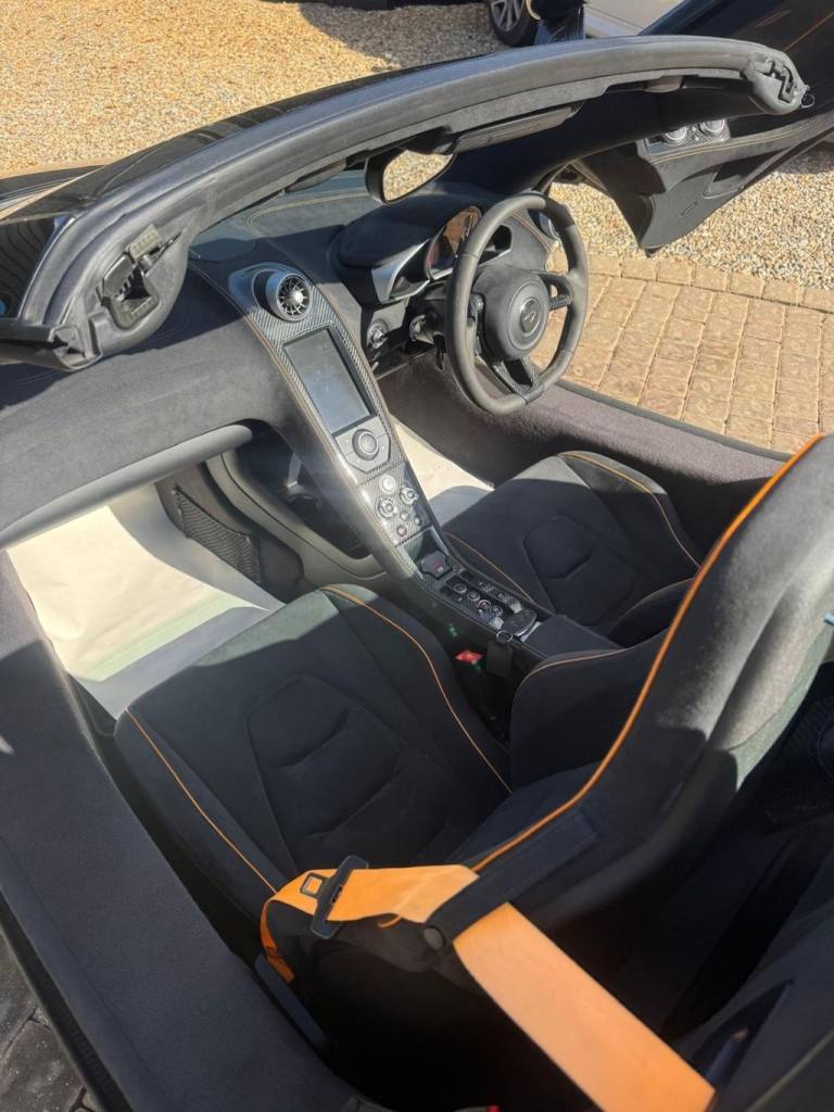 2014 64 Reg MCLAREN 650S 3.8T V8 Spider SSG Euro 5 2dr 42000 Miles With fantastic History Massive Specification Carbon Fibre Extras Full Suede Interior Suede Dash door cards and Seats with orange stitching Carbon Interior Trim and panels DAB Radio Parking sensors Front lift Carbon ceramic brakes Carbon wing mirrors Carbon side vents and rear wing Amazing Car Finance Available Px Welcome Please call anytime [Phone number removed] - [Phone number removed] Open 7 Days A Week.