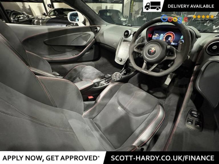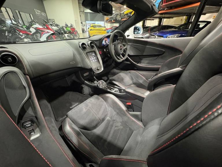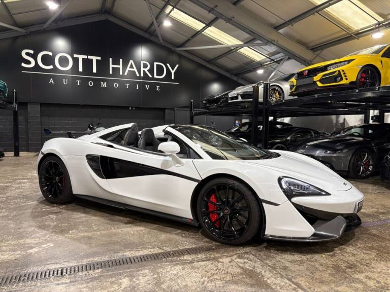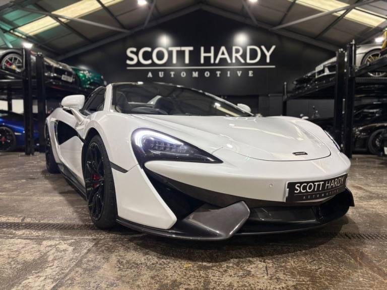 Scott Hardy automotive are proud to present ths stunning MCLAREN 570s in Silica metallic white. Experience the thrill of open-air performance redefined. The McLaren 570S Spider, cloaked in pristine Silica White, is a masterclass in aerodynamic artistry and visceral engineering. MSO Carbon Fibre Rear Spoiler - Sculpted for downforce, styled for dominance. Carbon Fibre Interior Accents Precision-crafted for a cockpit that echoes motorsport DNA. Alcantara steering wheel where tactile luxury meets razor-sharp control. Titanium super sports exhaust a symphony of aggression with every throttle surge. Carbon ceramic brakes with red calipers fade-resistant stopping power, branded with the black McLaren insignia. Nose Lift System - Seamlessly navigate urban terrain without compromising stance. Front & rear parking Sensors + reverse camera - confidence in every maneuver. This isnt just a convertible. Its a statement. A fusion of elegance and ferocity, engineered to stir the soul and dominate the road. Full dealer facilities available, Finance available, please apply via our website or call for a quote. We have a team of experienced buyers who hand pick our cars from all parts of the UK so you can buy with confidence all vehicles are HPI Clear and prepared to the highest standard. We believe in providing our customers with a personal and first class level of service,Full dealer facilities available, Part exchanges welcomed. TO ENQUIRE OUT OF BUSINESS HOURS PLEASE CALL MATT ON: 07711097959.MSO Defined Carbon Fibre Rear Spoiler, 19in Front and 20in Rear Alloy Wheels - 10 Spoke Super Lightweight Forged, Security Pack, Vehicle Lift, Rear View Camera, Front and Rear Parking Sensors, Brake Calipers - Red with Black McLaren Logo, Carbon Black Alcantara Steering Wheel, Nappa Sport - Black with Jet Black, MSO Defined Titanium Super Sports Exhaust with Nano Clear Exhaust Finishers, Carbon Fibre Interior Upgrade, Carbon Fibre Interior Components, Silica White, 12V Accessory Socket, 19in Front and 20in Rear Alloy Wheels - Sport 10 Spoke, 3x Handling Modes - Normal - Sport - Track, 7in Portrait Touch Screen Monitor, AM-FM Radio, Adaptive Damping S Tune, Alarm, Anti-Lock Braking System - ABS, Audio Media Player, Automatic LED Daytime Running Lights and Rear Lights, Automatic Lights and Rain Sensor, Black Leather Steering Wheel, Black Seatbelts, Bluetooth Telephony, Body Colour Door Mirror Casings and Door Mirror Arms, Body Colour Retractable Hard Top Roof, Brake Calipers - Black with Silver McLaren Logo, Carbon Ceramic Brakes with 6 Piston Calipers Front and 4 Piston Calipers Rear, Central High Mounted Stop Lamp, Cruise Control, DAB Radio, Dark Palladium Aero Blades, Dark Palladium Diffuser, Dark Palladium Exterior Door Inserts, Dark Palladium Front Splitter, Dark Palladium Rear Deck, Dark Palladium Rear Spoiler, Dark Palladium Service Cover, Dark Palladium Side Intakes, Dark Palladium Side Skirts, Dark Palladium Tonneau Cover, Dihedral Doors, Driver and Passenger Airbag, Dual Function LED Rear Fog - Reverse Light, Dual Zone Climate Control, Dynamic Electronic Stability Control - DESC, Electrically Folding Heated Door Mirrors with Dip in Reverse Functionality, Electrochromatic Dipping Rear View Interior Mirror, Electronic Immobiliser, Electronic Parking Brake, Exposed Engine Bay, Exterior and Interior Secondary Mechanical Door Releases, Follow Me Home Headlights, Front Side Airbags, Full LED Headlights with Automatic Headlight Levelling, Glass Wind Deflector, Hill Hold Assist, IRIS Navigation, Keyless Entry and Lock - Keyless Start, Launch Control, Manual Adjust Steering Column - Reach and Rake, Manual Sports Seats, McLaren 4-Speaker Audio System, McLaren Brake Steer, On-Board Memory, One Touch Electric Windows, Pirelli P ZERO Corsa Tyres, Power Steering, Rear Window Heating Element on Glass-Rear Window, Satin Chrome Brightwork, Silver Badge Set, Silver Exhaust Finisher, TPMS - Tyre Pressure Monitoring System and Tyre Temperature Gauge, Textile Headlinin