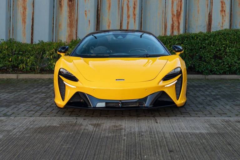 Introducing our stunning 2022 McLaren Artura finished in MSO (McLaren Special Operations) Volcano Yellow fully protected PPF (Paint Protection Film). This particular example is a 3 owner from new vehicle that has covered 13,500 miles and benefits from a Full McLaren Main Dealer Service History with the last service completed in October 2025. This vehicle is inclusive of a McLaren Warranty until October 2027 and Battery Warranty until October 2028. Specified from new with a fantastic optional specification including: MSO Paint - Volcano Yellow, Bowers & Wilkins Audio System, Smartphone Integration Package, Door Mirror - Gloss Black, Sports Exhaust, Exhaust Finisher - Stealth Black Pack, Engine Covers - Satin Titanium, Front Fender - Gloss Black Louvres, Thermal Insulated Windscreen, Performance Black/ Black and Black Accent, Sill Finisher - Jet Black Leather, Seats - ClubSport with Lumbar Adjustment, Carbon Fibre Interior Pack, Steering Wheel finished in Carbon Black Alcantara, 3 Point Seat Belt - Black, Performance Spec, Practicality Pack, Branded Floor Mat Set, Parking Sensors and Rear Parking Camera, Technology Pack, Vehicle Lift, Vehicle Tracking System, 10-Spoke SLW Dynamo Forged Alloy Wheels in Gloss Black, Calipers - Yellow with Silver Logo, Pirelli P ZERO Cyber Tyres. Here at Magma Cars we are true Enthusiasts and welcome the opportunity to discuss any queries you may have and to help you find your perfect new performance car. All of our vehicles come inclusive of a comprehensive 12 month warranty in partnership with Warranty Solutions Group and are presented to the highest standard. Find us at [Website URL removed]. For Enthusiasts By Enthusiasts..Alcantara - Carbon Black, 3x Handling Modes - Comfort - Sport - Track, 4x Powertrain Modes E-Mode-Comfort-Sport-Track, 8in HD Touch Screen, Alcantara Cabin Surfaces, Alcantara Headlining - Carbon Black, Alloy Wheels - 20in 10-Spoke Super-Lightweight Forged, Aluminium Superformed Roof - Rear Clamshell - Doors - Roof and A-Pillars, Anti-Lock Braking System - ABS, Anti-Roll Bars, Audio Media Player, Automatic LED Rear - Brake Lights, Automatic Lights and Rain Sensor, Automatic Signature LED Daytime Running Lights, Automatic Speed Limiter - AtS, Black Satin Gearshift Paddles, Black Satin Interior Finish, Black Sparkle Metallic Interior Components, Bluetooth Telephony, Body Colour Door Mirror Casings and Door Mirror Arms, Body Colour Roof and Cantrails, Boot Lining - Front Luggage. Flock Lined, Brake Assist Technology, Brake Calipers - Black with White McLaren Logo, Brake Disc Wipe Technology, Brake Pad Wear Sensors - Front and Rear, Brake Pre-Fill Technology, Carbon Black Alcantara Interior, Carbon Ceramic Brakes with 6 Piston Aluminium Calipers Front and 4 Piston Aluminium Calipers Rear, Carbon Fibre Windscreen Surround, Central High Mounted Stop Light - CHMSL, Centre Console Bin, ClubSport Seats, Cruise Control, Cup Holders x2, DAB Radio, Diffuser and Rear Bumper - Gloss Black, Dihedral Doors, Driver and Passenger Airbag, Driver and Passenger Foot Rest, Dual Function LED Rear Fog - Reverse Light, Dual Zone Climate Control, E-Mode and EV Start-Up, Electrically Actuated Locking Differential - E-Diff, Electro Hydraulic Power Assisted Steering, Electronic External Door Release, Electronic Parking Brake with Auto Release, Electronic Stability Control - ESC, Engine Cover in Brushed Aluminium, Exhaust and Hot Vee Finishers - Silver, FM Radio, Flying Buttresses, Follow Me Home Headlights - Adjustable Time, Frameless Electrochromatic Dimming Rear View Interior Mirror, Front Air Intakes and Headlight Surrounds - Gloss Black, Front Electric Windows, Front Fender Louvres - Body Colour, Front Luggage Area Illumination, Front Luggage Retention Nets, Full LED Headlights with Automatic Headlight Levelling, Gloss Black Front Splitter, HD Driver Display, Headlight Finish - Black, Heated Door Mirrors - Manual Folding, Hill Hold Assist, Interior Courtesy Light, Interior Map Lights x2, Launch Control, Leather Steering Wheel -Jet Black, MIS - McLaren Infotainment System II, McLaren Audio System, McLaren Brake Steer, McLaren Carbon Fibre Lightweight Architecture - MCLA, McLaren De