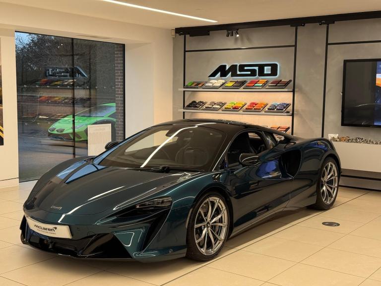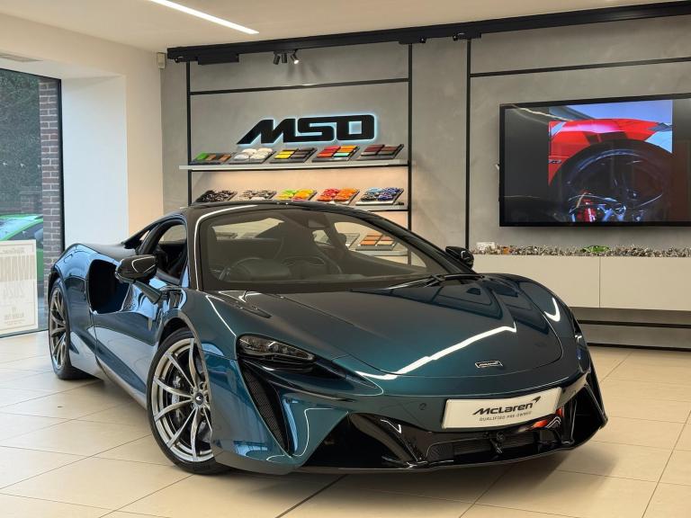 Harwoods McLaren New Forest are delighted to present this stunning McLaren Artura Coupe as part of our Pre-Owned stock holding. The exterior has been finished in Elite Serpentine Paint over Carbon Black with Teal accents and has covered just 7575 miles.*Included with this McLaren purchase is the balance of manufacturers warranty servicing carried out when due within 4 months or 4,000 miles and a comprehensive multi point inspection carried out by McLaren trained technicians.**Tech Lux Specification, Black Pack, Bowers and Wilkins Audio System, Smartphone Integration Package, Gloss Black Mirrors, Sports Exhaust, Stealth Exhaust Finisher, Clubsport Seats w Lumbar adjustment, Gloss Black Interior Pack, Practicality Pack, Branded Floor Mats, Technology Pack, Parking Sensors and Rear Parking Camera, Vehicle Lift, 10 Spoke Dynamo Forged Alloy Wheels finished in Liquid Metal, Polished Brake Callipers. FULL PPF*** We are proud to be part of the Harwoods group, a family run business established in 1931** If this isn't the right car for you, please contact us and we will find it. We look forward to seeing you soon***