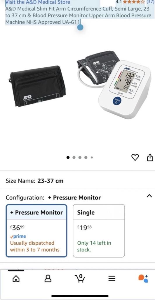 A&D BP monitor - this is the plus model that has HB/AFib indicator.