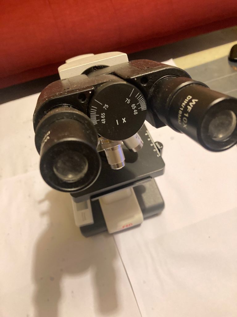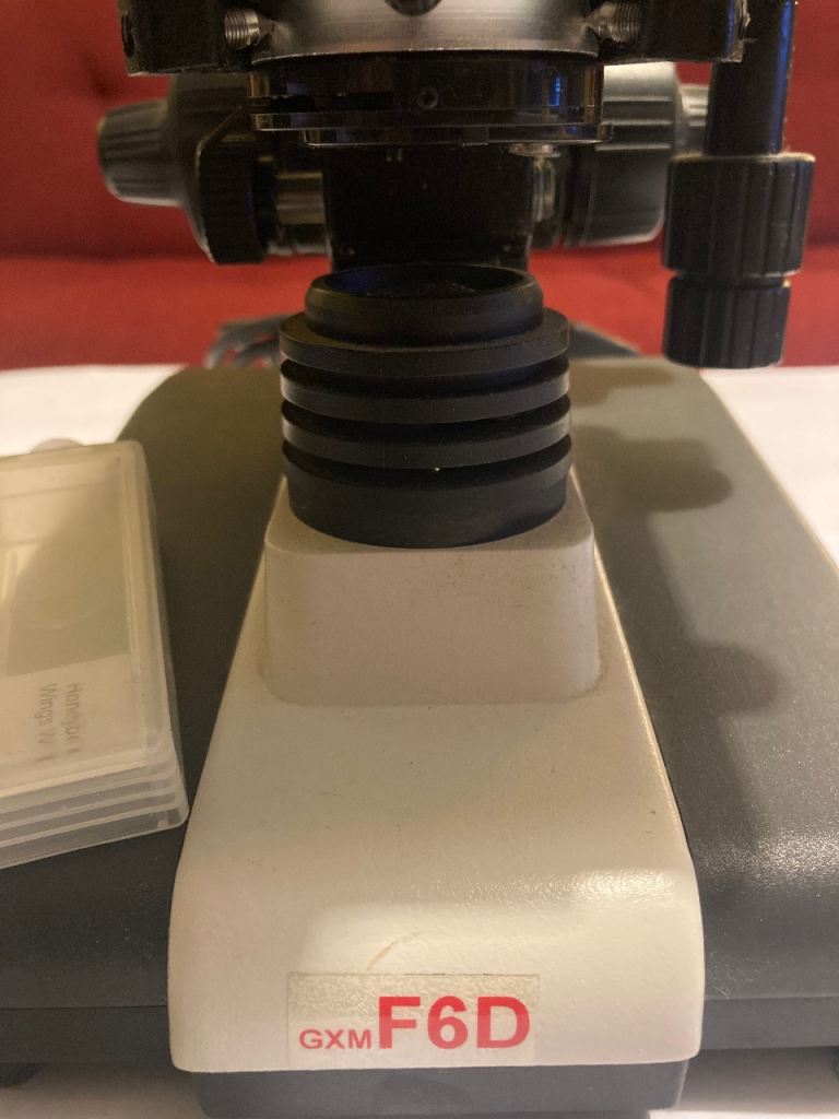 The GXM F6D is GX Microscopes’ best value for money binocular biological microscope. This microscope is supplied with four good quality, achromatic glass objectives in RMS threaded steel barrels giving a maximum magnification of 1000x and a magnification range of 40X-1000X. The head of the microscope is binocular and is equipped with 2 10X WF eyepieces, adjustable Interpupilary distance and adjustable diopter settings to accommodate a range of users regardless of eyesight differences. It is additionally equipped with a high quality Abbe condenser and a professional grade mechanical stage. The Abbe condenser is designed to present precisely the correct cone of light to the objectives which can greatly increase the resolving power of the optics. Furthermore the condenser can be adjusted to produce different image enhancement effects such as ‘pseudo-phase’ which is particularly helpful when looking at unstained cytoplasmic materials. The mechanical stage enables highly accurate and systematic scanning of specimens at high magnifications which is vital for many professional users who need to scan whole slides or perform counts. The coaxial coarse and fine focus knobs are similar to those you find on much more expensive professional microscopes. The F6D has LED illumination providing a low temperature, white light giving accurate colour reproduction. It is powered by mains or by rechargeable batteries (batteries not included), making it an ideal portable microscope. The F6D microscope is outstanding value for money and is suitable for the viewing of almost all slide mounted specimens. Wide field eyepieces, choice of Achromatic objectives Coaxial coarse/fine focus system, Mechanical stage Height adjustable Abbe condenser, NA=1.25. LED Illumination Binocular head. This microscope is widely used by professionals including veterinary and breeding applications, in universities, colleges, schools and by amateurs.